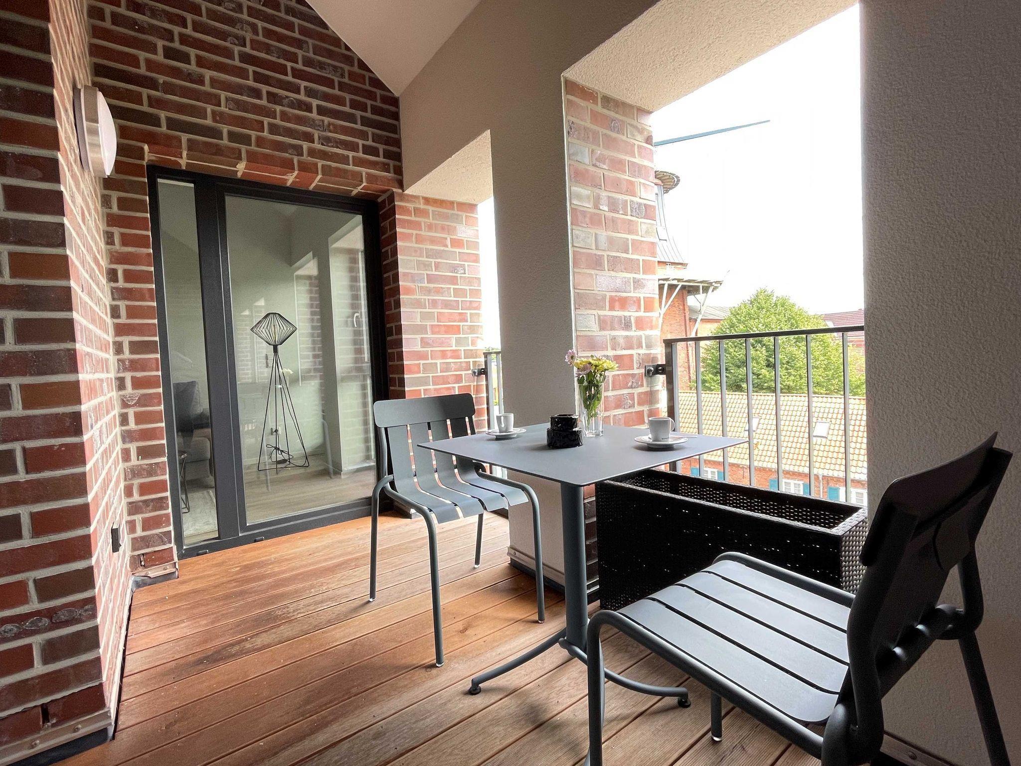 Modernes, gemütliches Apartment in Norden nahe Nordsee, ideal für bis zu drei Personen mit Balkon und barrierefreiem Bad.