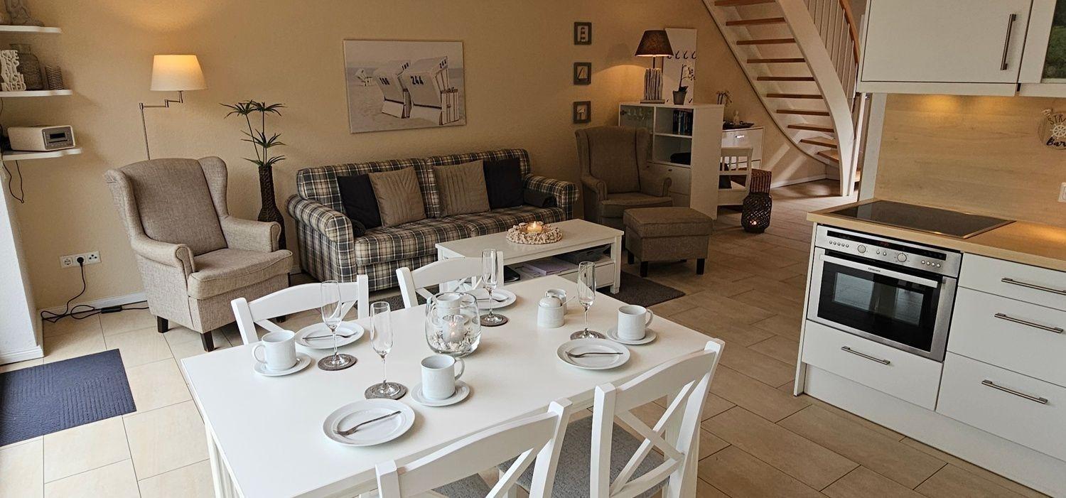 Die Wohnung Meerraum verfügt über eine Einbauküche, diese erfüllt all Ihre Ansprüche und Wünsche. Sie verfügt über einen Backofen, ein Ceran-Kochfeld, ein Kühlschrank mit Gefrierfach, einen Geschirrspüler, einer Kaffeemaschine und eine Nespresso-Kapselmaschine, eine Mikrowelle, einen Geschirrspüler, ein Wasserkocher und einen Toaster. Für reichlich Geschirr, Besteck und Kochgeschirr ist ebenfalls gesorgt.