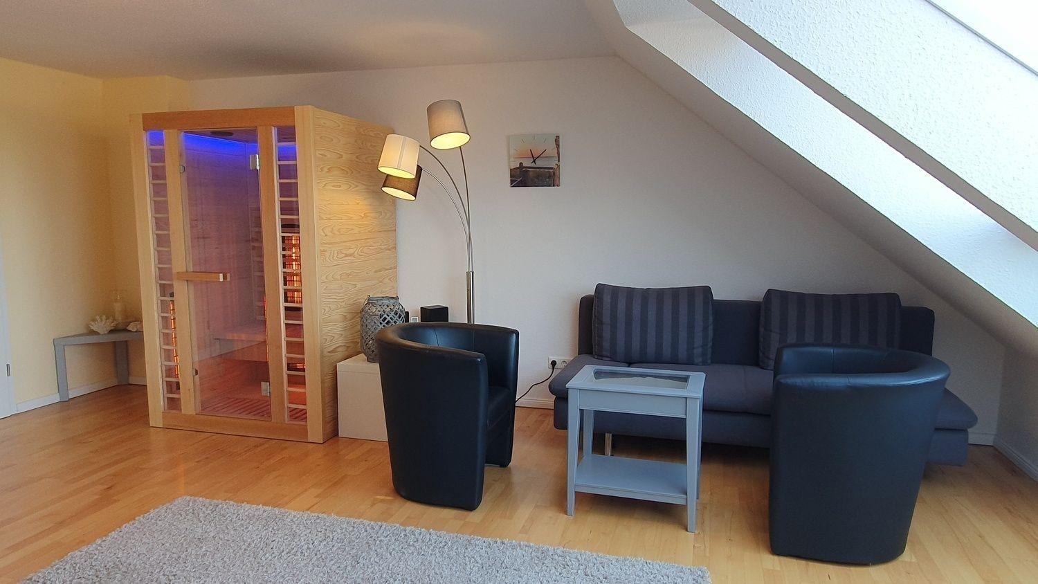 Stilvolle Ferienwohnung in Norddeich mit Garten, Sauna und direkter Deichlage für erholsame Tage an der Nordsee.