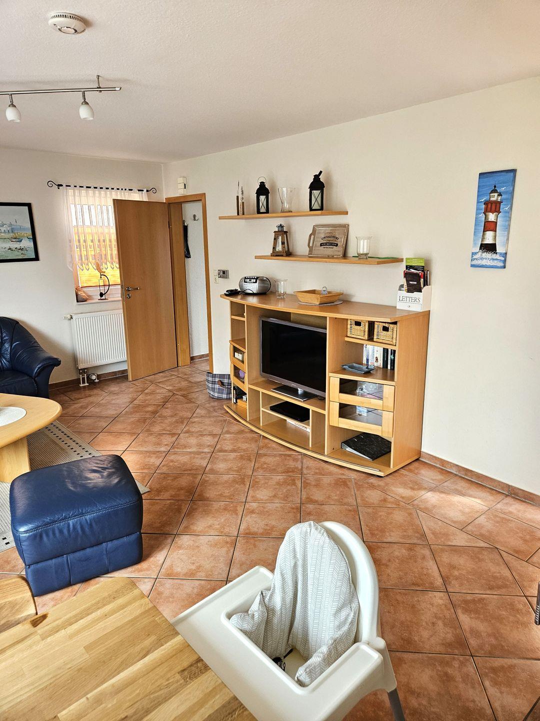 Das Wohnzimmer verfügt über einen Kaminofen, außerdem steht unseren Gästen eine Sauna im Haus zur Verfügung.