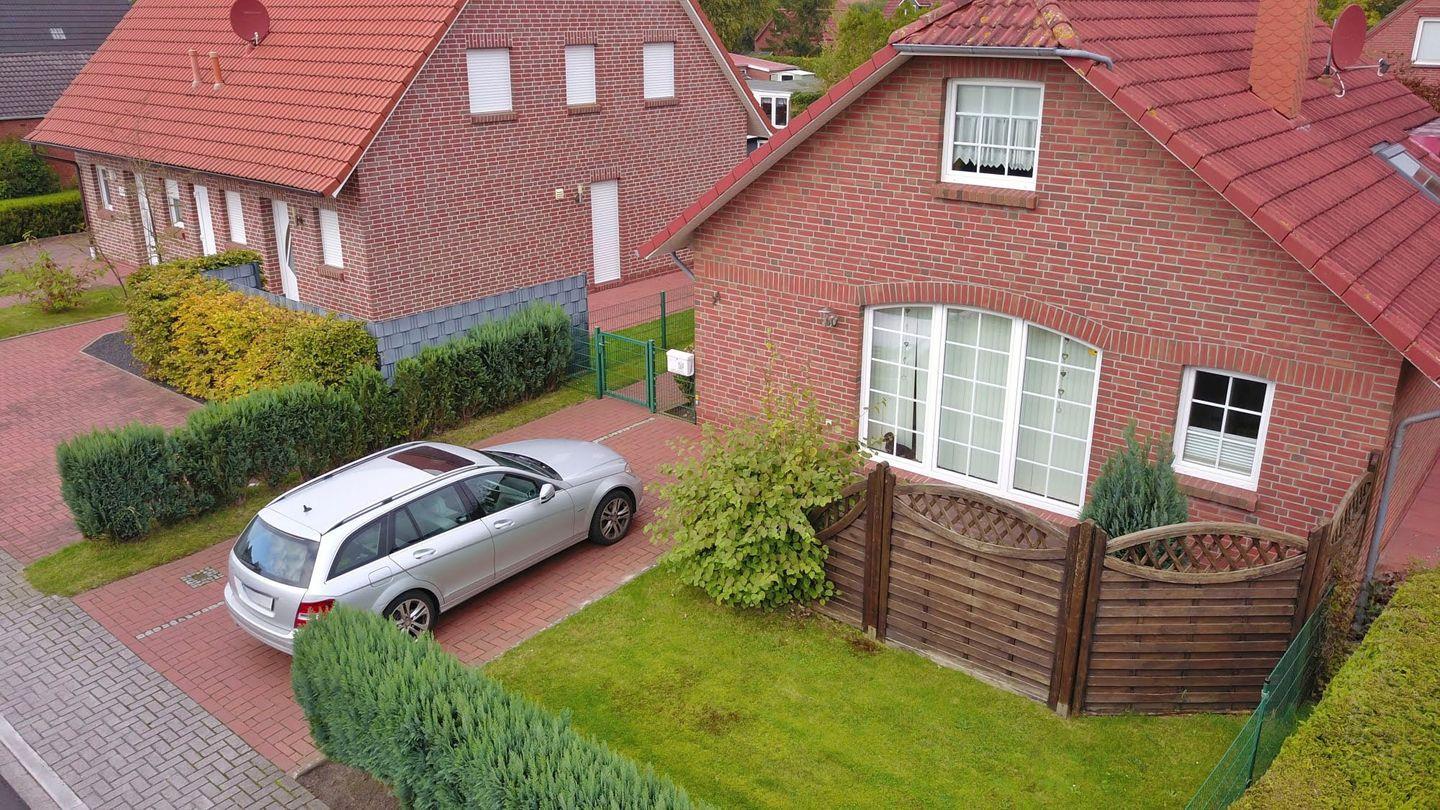 Das Haus am Ortsrand von Norden verfügt über zwei Schlafzimmer, zwei Tageslichtbäder sowie einen Wohn-Essbereich mit Kaminofen und Sauna.