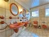 Badezimmer: Modernes Bad mit Dusche, WC und Föhn.