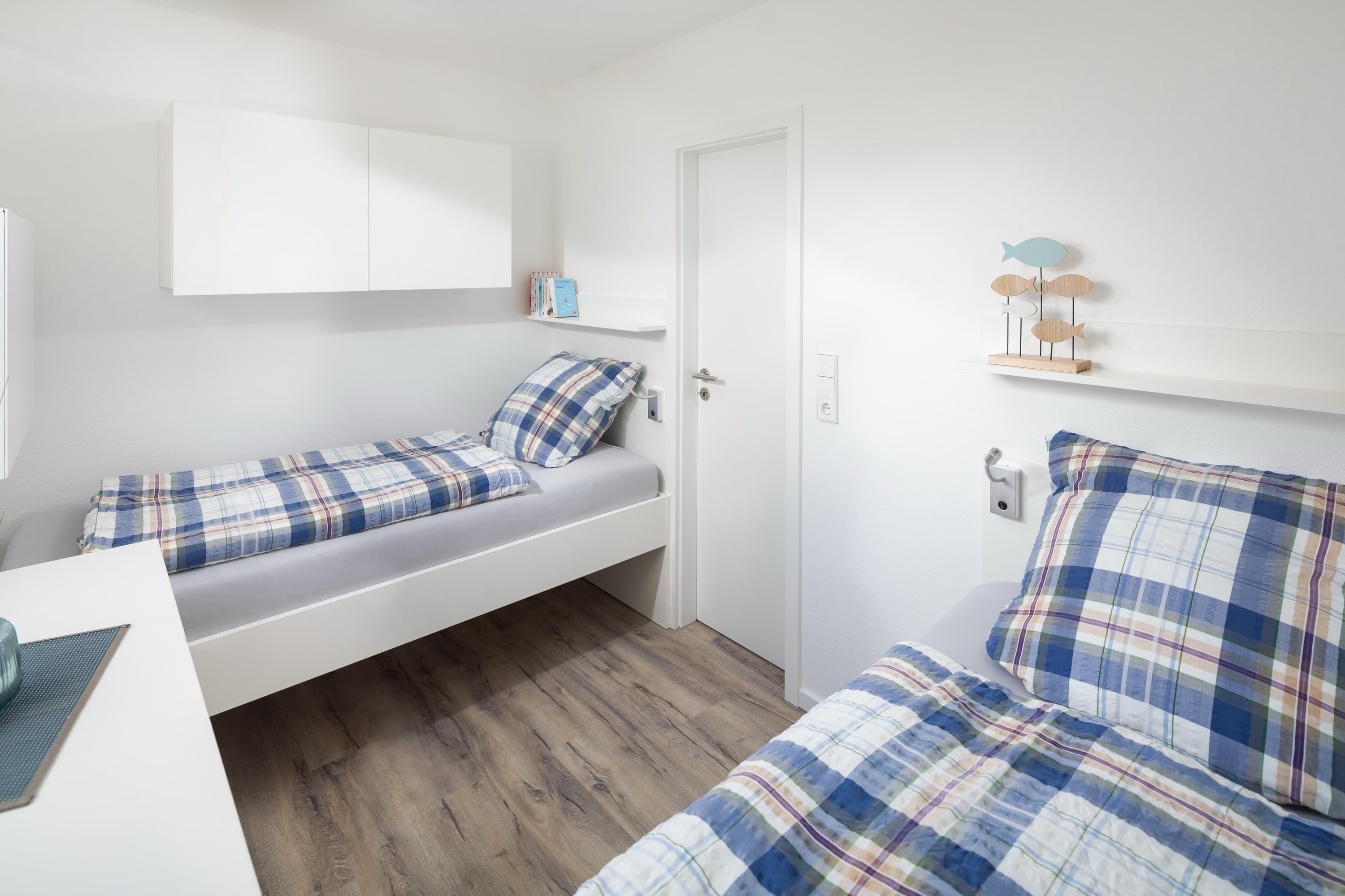Das Apartment wurde im Frühjahr 2019 kernsaniert und komplett neu gestaltet. Es bietet Platz für 2-3 Personen. Neben einer gemütlichen Couch (zum alternativen Schlafplatz mit Lattenrost klappbar) und TV steht eine moderne und funktionale Küchenzeile zur Verfügung. Am Esstisch kann man gemeinsam essen und spielen. Das separate Schlafzimmer verfügt über 2 Einzelbetten (90cm breit). Das Duschbad ist weiß gefliest. Die Wohnung hat einen ruhigen und überdachten Balkon zur Hofseite.