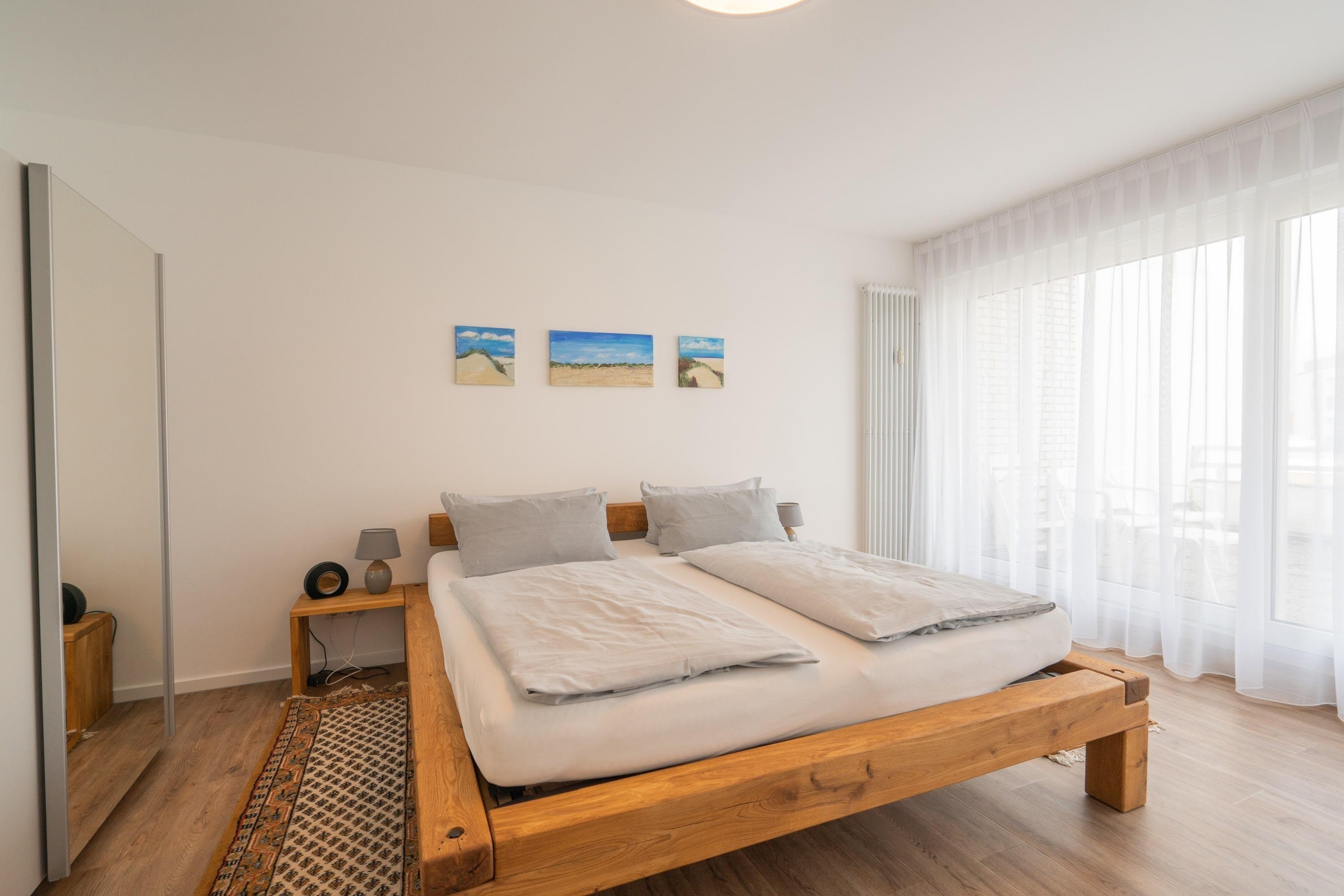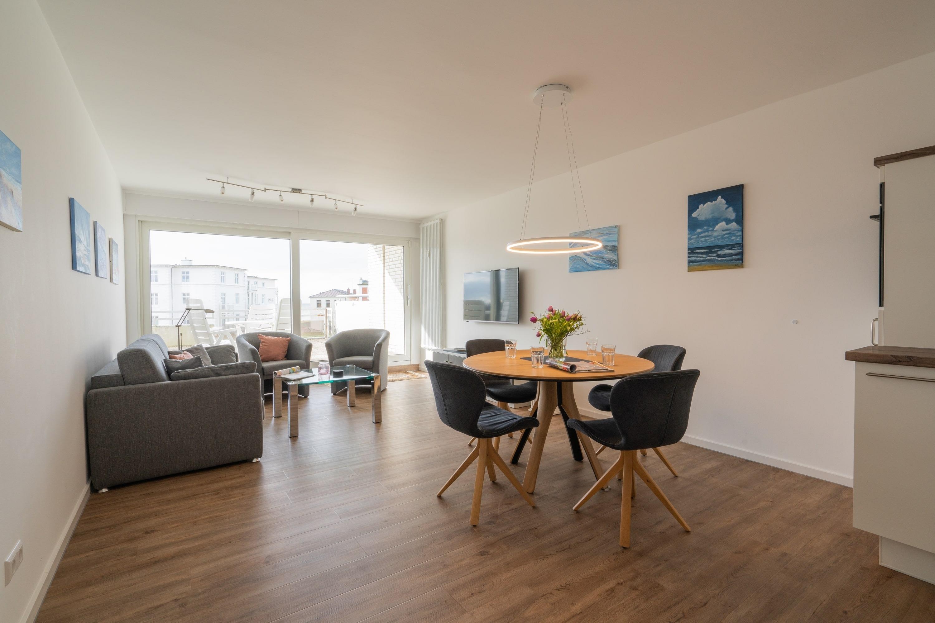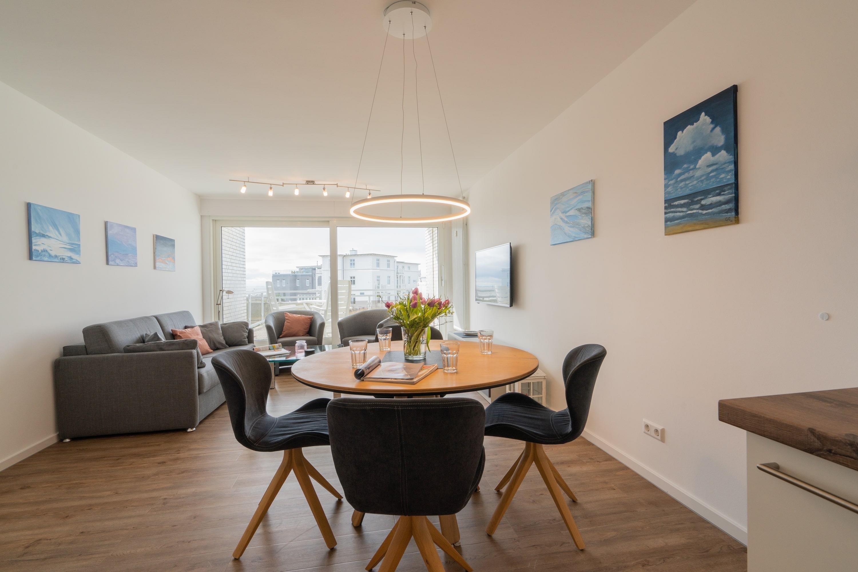 Moderne Ferienwohnung mit Balkon und traumhaftem Meerblick auf Norderneys Weststrand.