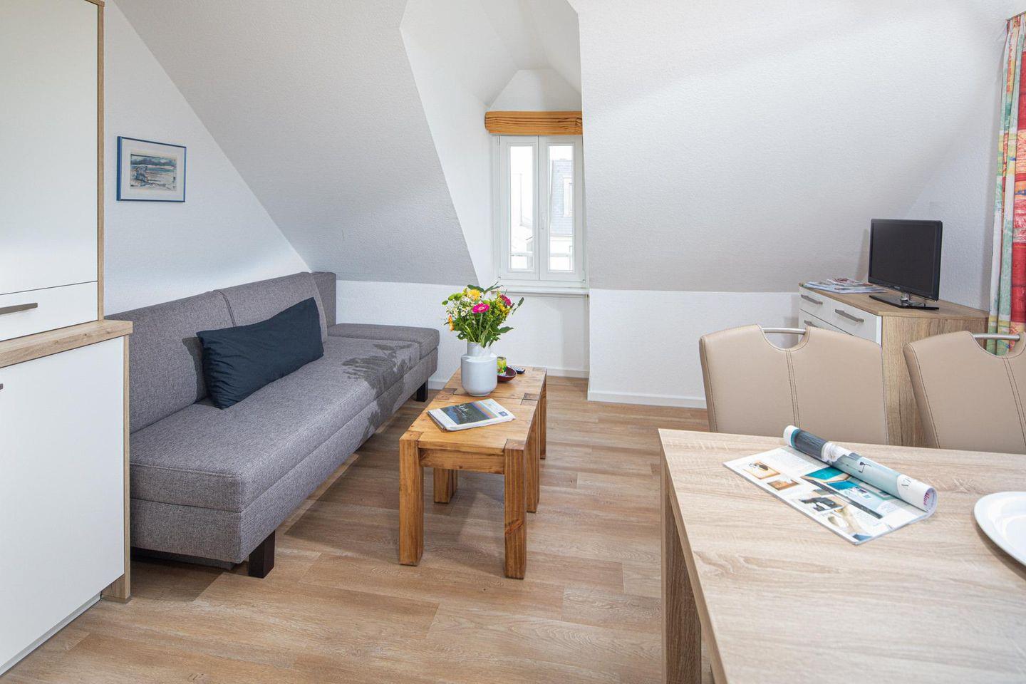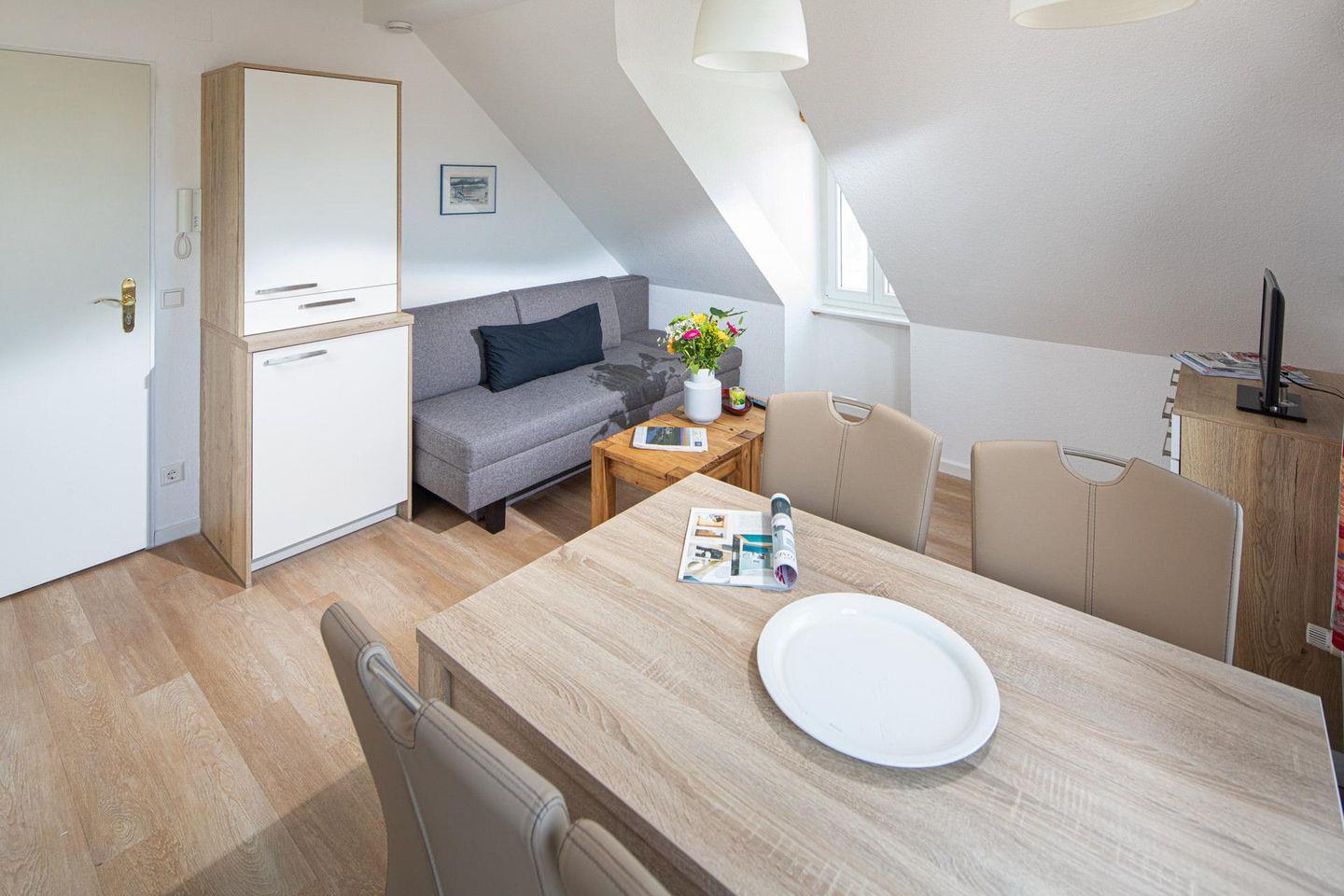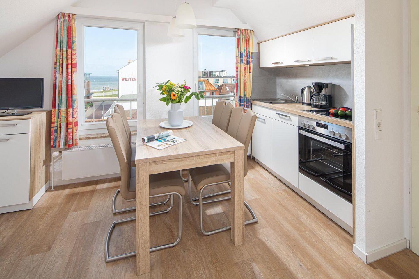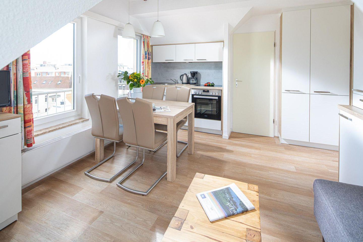 Die Ferienwohnung "Inselhus 10" liegt im Damenpfad. Die Wohnung eignet sich für bis zu 3 Personen. Es ist wichtig zu beachten, dass diese Wohnung aufgrund ihrer Beschaffenheit nicht für Kinder geeignet ist, weshalb sie ausschließlich an erwachsene Gäste vermietet wird. Die Wohnung liegt im 4. Stock und es gibt keinen Aufzug. Daher könnte es eine Herausforderung sein, schwere Gepäckstücke die Treppen hinaufzutragen. Um dieses Problem zu umgehen, wird ein "Koffer rund um sorglos Paket" angeboten, das den Gästen dabei hilft, das Gepäck zur Wohnung zu transportieren. Der Damenpfad befindet sich nur ca. 110m vom Strand entfernt. Zahlreiche Restaurants, Cafés (zum Beispiel Marienhöhe, Milchbar) und Einkaufsmöglichkeiten sind fußläufig erreichbar.