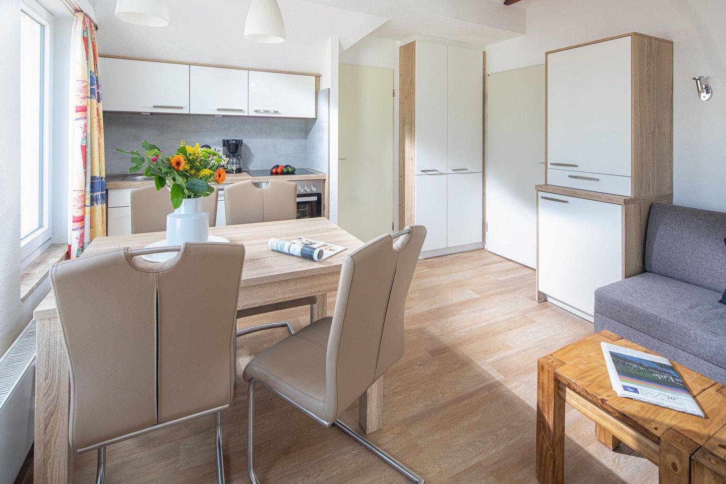 Diese Ferienwohnung umfasst ein Schlafzimmer mit einem Doppelbett. Das Wohnzimmer ist mit einer Schlafcouch für eine weitere Person ausgestattet. Die offene Küchenzeile ist voll ausgestattet. Das Badezimmer wurde mit einer Dusche ausgestattet. Ein Highlight dieser Wohnung ist die Dachterrasse. Hier darf auch der vierbeinige Freund mitkommen, denn die Ferienwohnung "Inselhus 10" heißt auch Hunde herzlich willkommen. Erlaubt ist maximal 1 Hund (Höhe maximal kniehoch). Die Hundewiese befindet sich in der Nähe des Fährhafens (kein Leinenzwang).