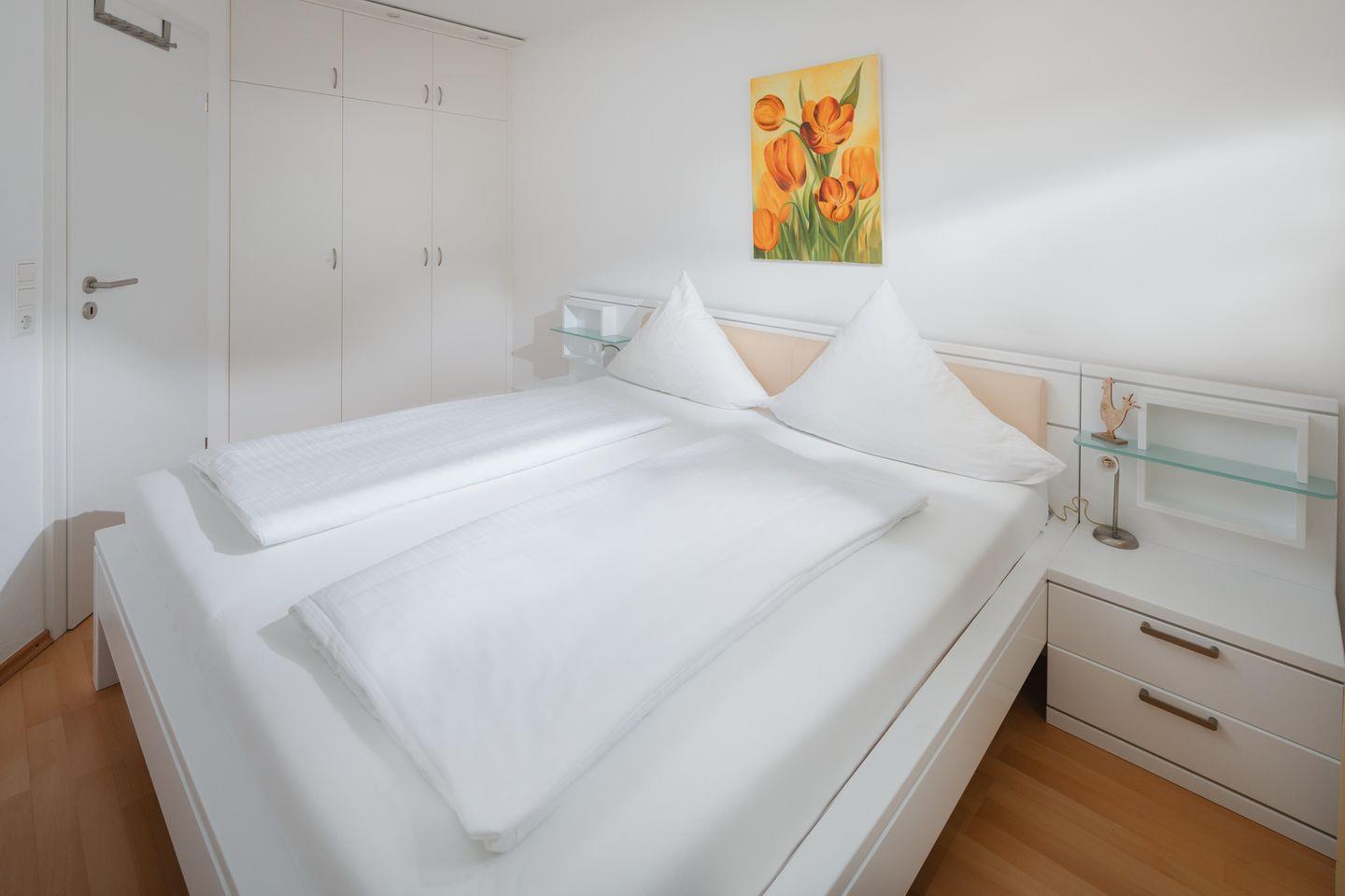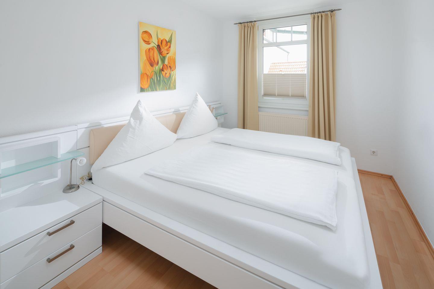 Die Wohnung 16 liegt im ersten Obergeschoss im rückwärtigen Teil des Hauses und ist nach Osten ausgerichtet. Sie ist hell eingerichtet und lichtdurchflutet. Das Schlafzimmer ist mit einem Doppelbett ausgestattet. Das Wohnzimmer verfügt über einen Koch- und Essbereich und einen neuen Smart-TV. Das Badezimmer ist modern gestaltet und verfügt über eine Dusche und ein WC mit Außenfenster. Ein besonderes Highlight der Wohnung "Windrose 16" ist der Balkon mit Balkonmöbeln. Fahrräder können im Ständer am Haus oder im Keller abgestellt werden. Waschmaschine und Wäschetrockner befinden sich im Haus und stehen (für die gemeinschaftliche Nutzung gegen Münzeinwurf) zur Verfügung, was besonders für längere Aufenthalte von Vorteil ist. Haustiere (Hunde) sind in dieser Ferienwohnung nicht erlaubt.