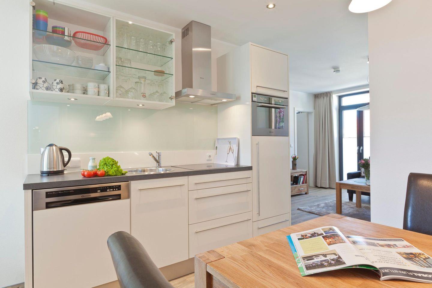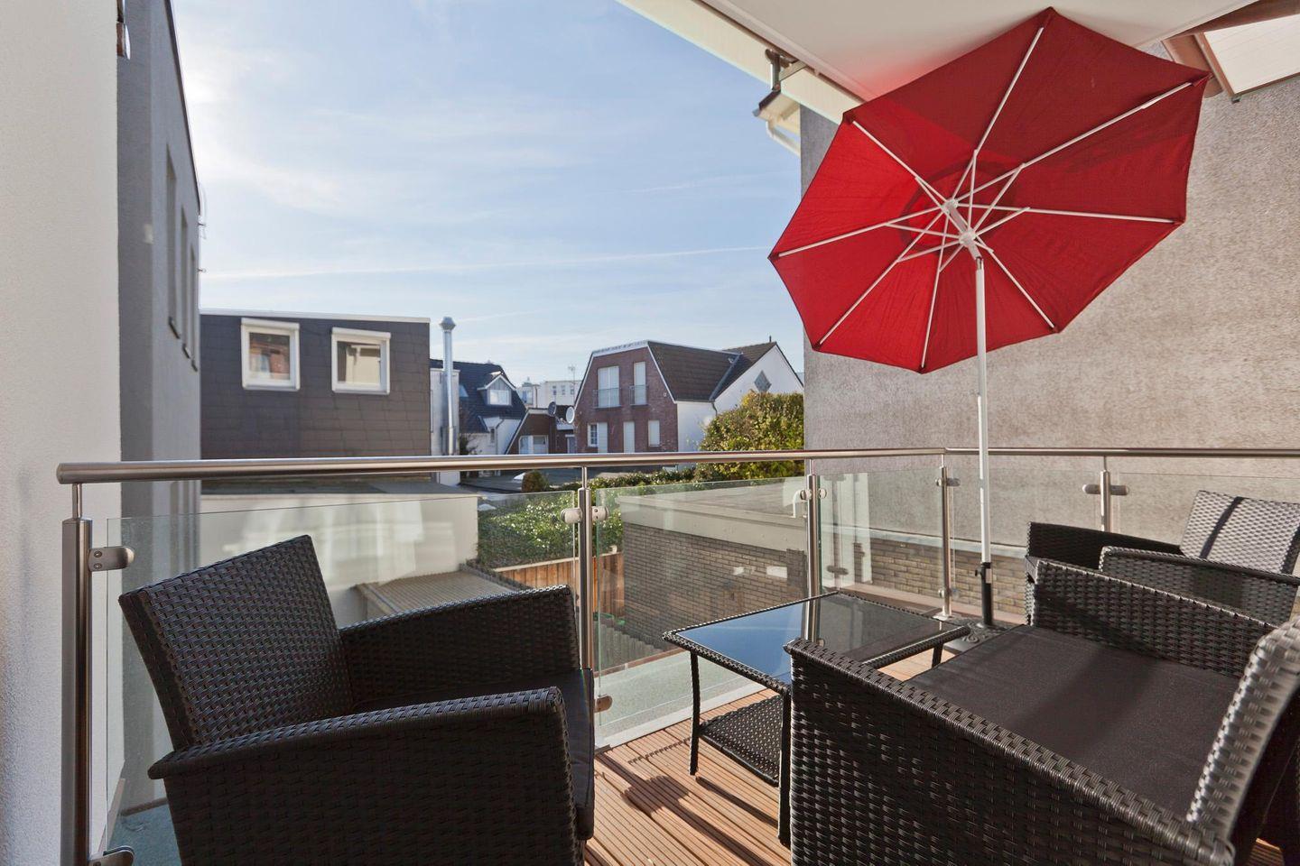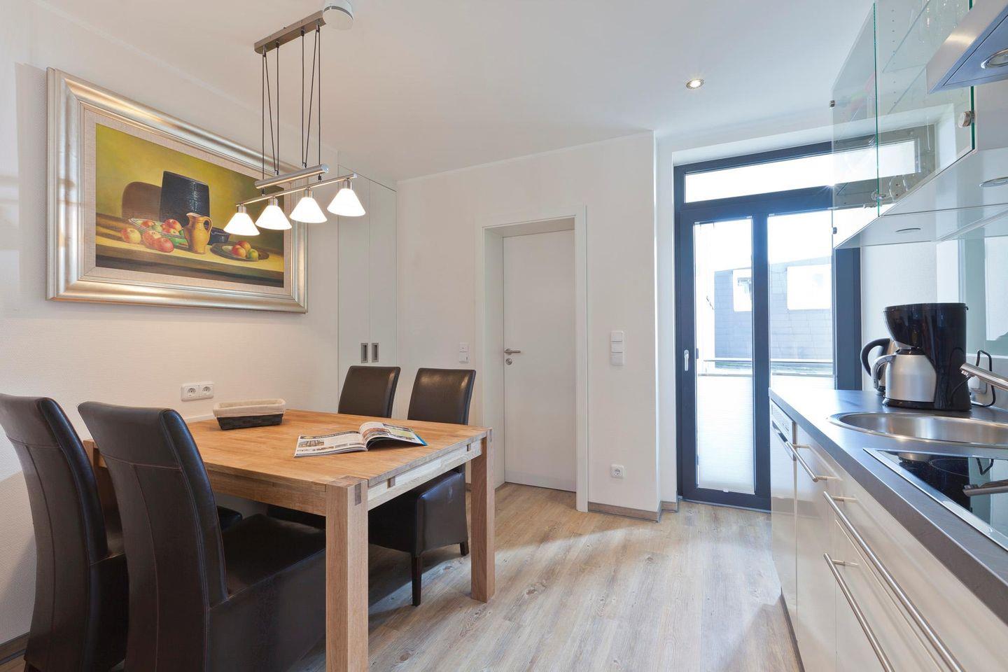 Moderne Ferienwohnung "Lara 2" auf Norderney, nahe Strand und Zentrum, mit Balkon und voll ausgestatteter Küche.