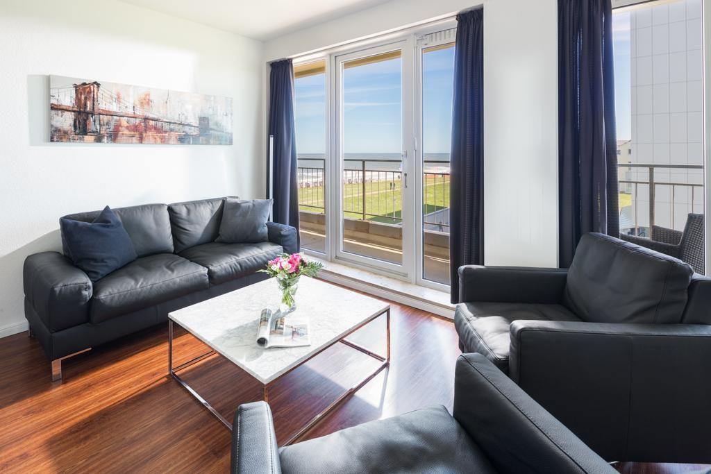 Die Ferienwohnung Kaiserhof 35 am Meer bietet Platz für 4 Personen und verfügt über Balkon mit seitlichem Meerblick.