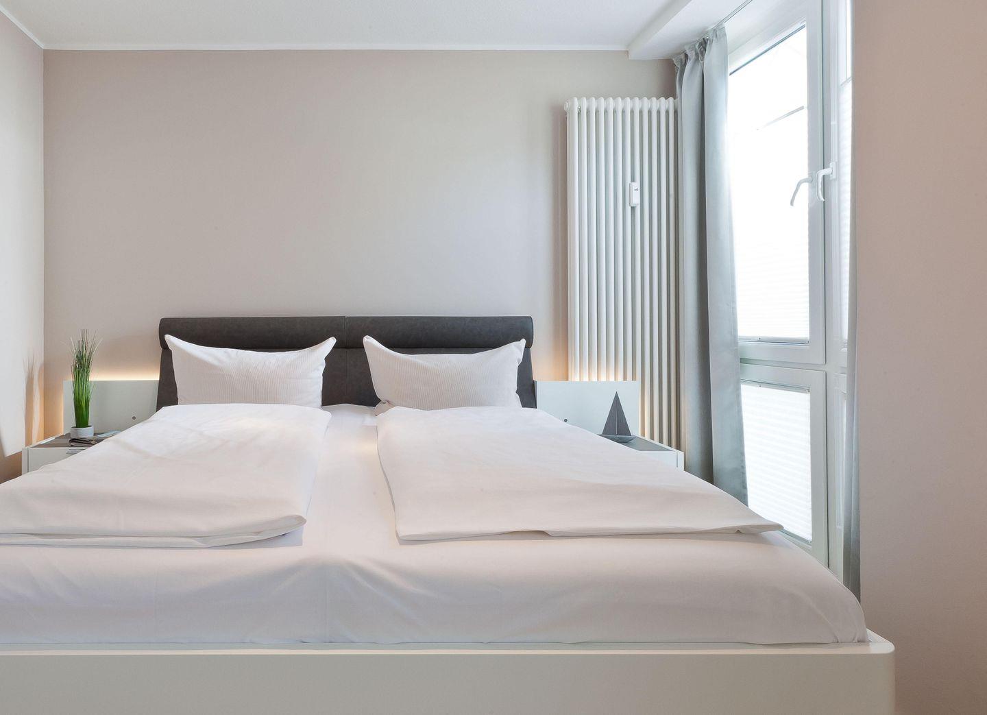 Die Wohnung ist modern ausgestattet. Das Schlafzimmer bietet mit einem Doppelbett Platz für bis zu zwei Personen. Zusätzlich können bis zu zwei weitere Gäste auf der Schlafcouch im Wohnzimmer übernachten. Der Wohnbereich verfügt über einen Smart-TV und die Kleiderschränke sind mit einer Innenbeleuchtung ausgestattet. Ein Highlight der Wohnung ist der ca. 7 qm große Balkon. Er liegt straßenabgewandt nach Süden. Zusätzlich steht eine Sauna bereit, die gegen Münzeinwurf (gemeinschaftlich) nutzbar ist. Ebenso erfordern die gemeinschaftlich nutzbare Waschmaschine und der Wäschetrockner den Einwurf von Münzen. Haustiere sind in dieser Ferienwohnung nicht erlaubt.