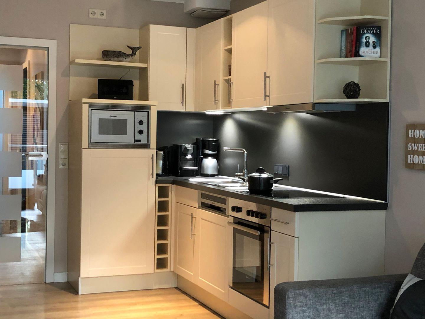 Moderne Ferienwohnung Sonne 3 auf Norderney mit Balkon, Sauna und Nähe zum Strand, ideal für erholsamen Urlaub.