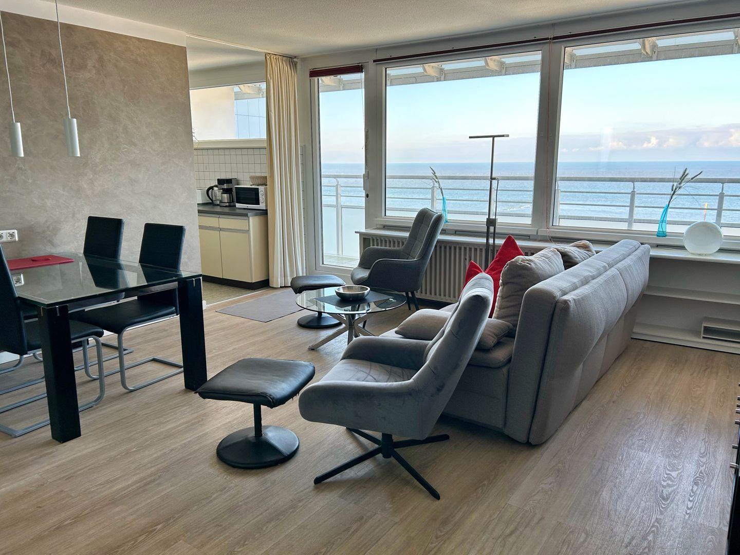 Genießen Sie den einzigartigen Meerblick von diesem komfortablen Appartement auf Norderney mit Balkon und moderner Ausstattung.