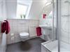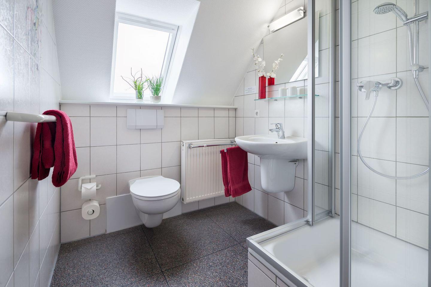 Das Badezimmer ist mit Dusche und WC ausgestattet.