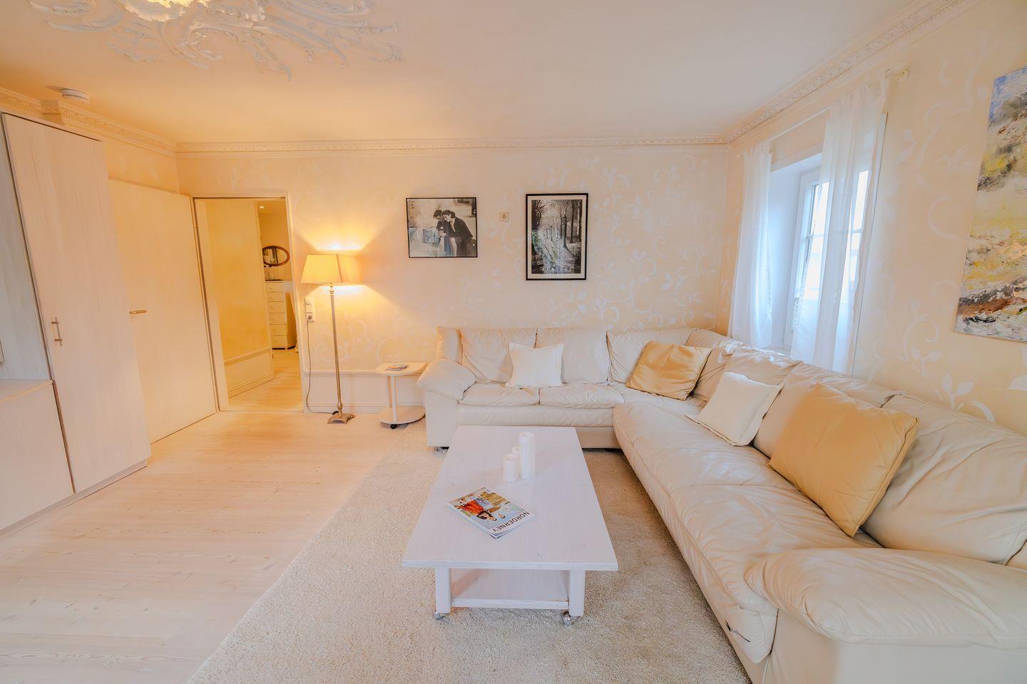 Die Wohnung verfügt über ein Schlafzimmer mit Parkettboden, das genug Platz für zwei Schlafmöglichkeiten bietet, sowie ein angenehmes Wohnzimmer ebenfalls mit Parkettboden. Der Wohnbereich ist mit einer bequemen Sofaecke und zwei Flachbildfernsehern mit Kabelfernsehen ausgestattet, was für entspannende Stunden sorgt. Zusätzlich sind ein CD-Spieler und ein Radio vorhanden, um für musikalische Unterhaltung zu sorgen. Ein WLAN-Zugang steht Ihnen selbstverständlich zur Verfügung, sodass Sie auch während Ihres Aufenthalts verbunden bleiben können.