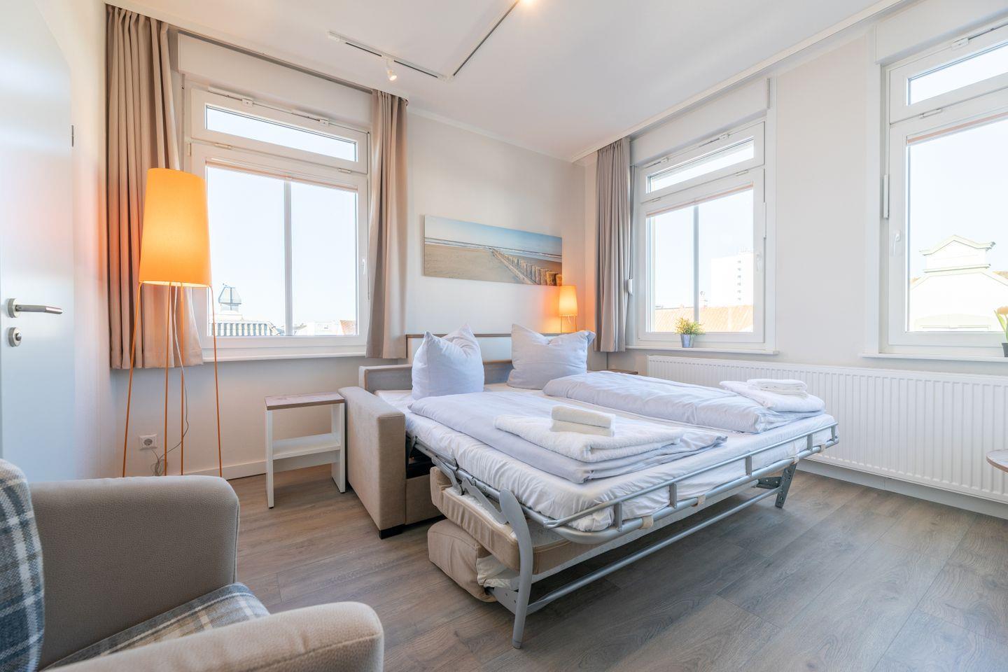 Moderne Einraumwohnung im maritimen Stil auf Norderney