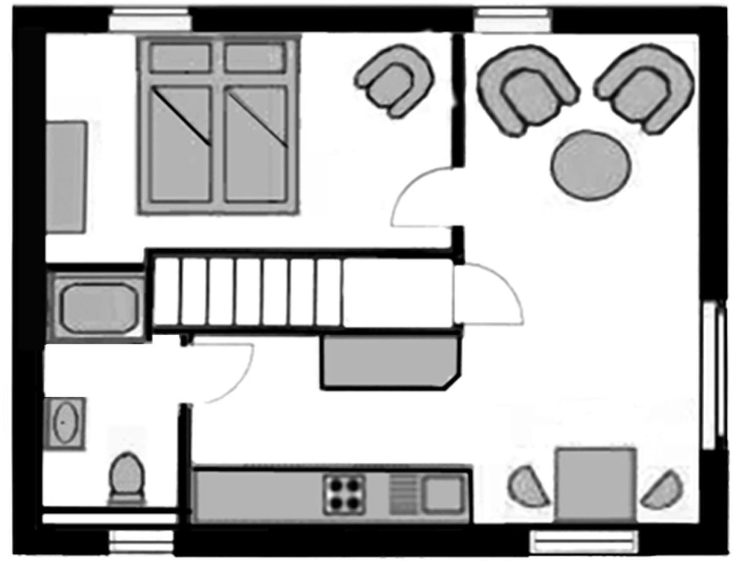 Die Küche ist offen in das Wohnzimmer integriert und umfassend ausgestattet. Zur Ausstattung zählen Ceranherd und Elektro-Backofen, Kühlschrank, Wasserkocher, Toaster, Kaffeemaschine sowie alle nötigen Küchenutensilien, Geschirr und Besteck. Geschirrhandtücher stehen ebenfalls zur Verfügung. Die Zubereitung individueller Mahlzeiten ist somit ohne Einschränkung möglich.