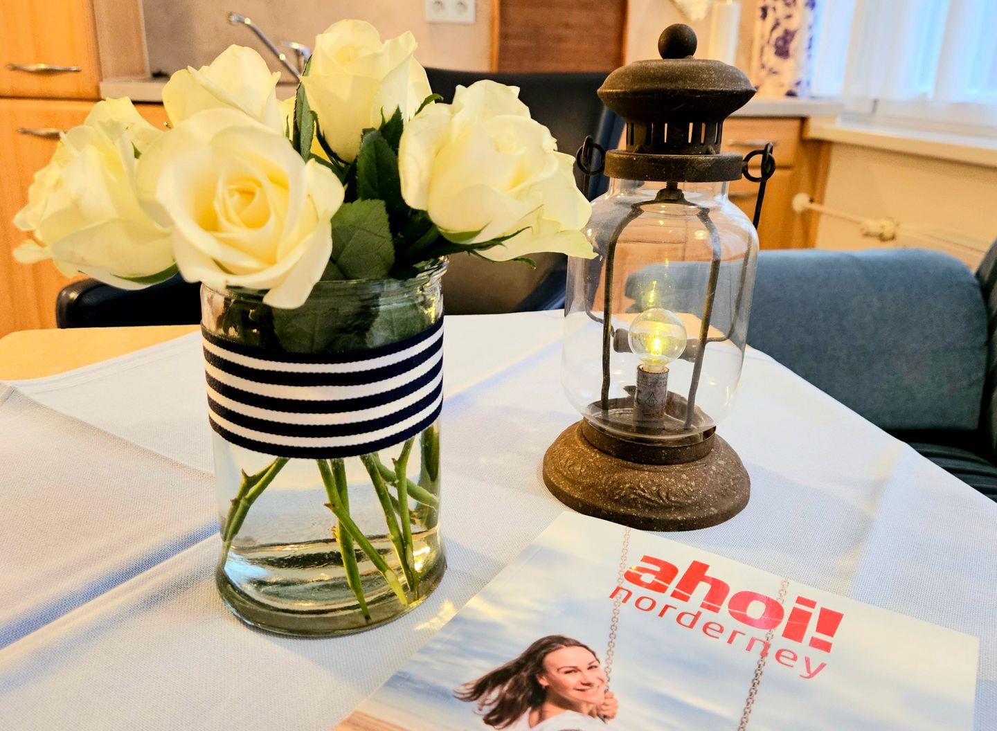 Gemütliche Nichtraucher-Ferienwohnung Fientjebloem auf Norderney, zentral gelegen, mit WLAN und offener Küche, ideal für 2 Personen.
