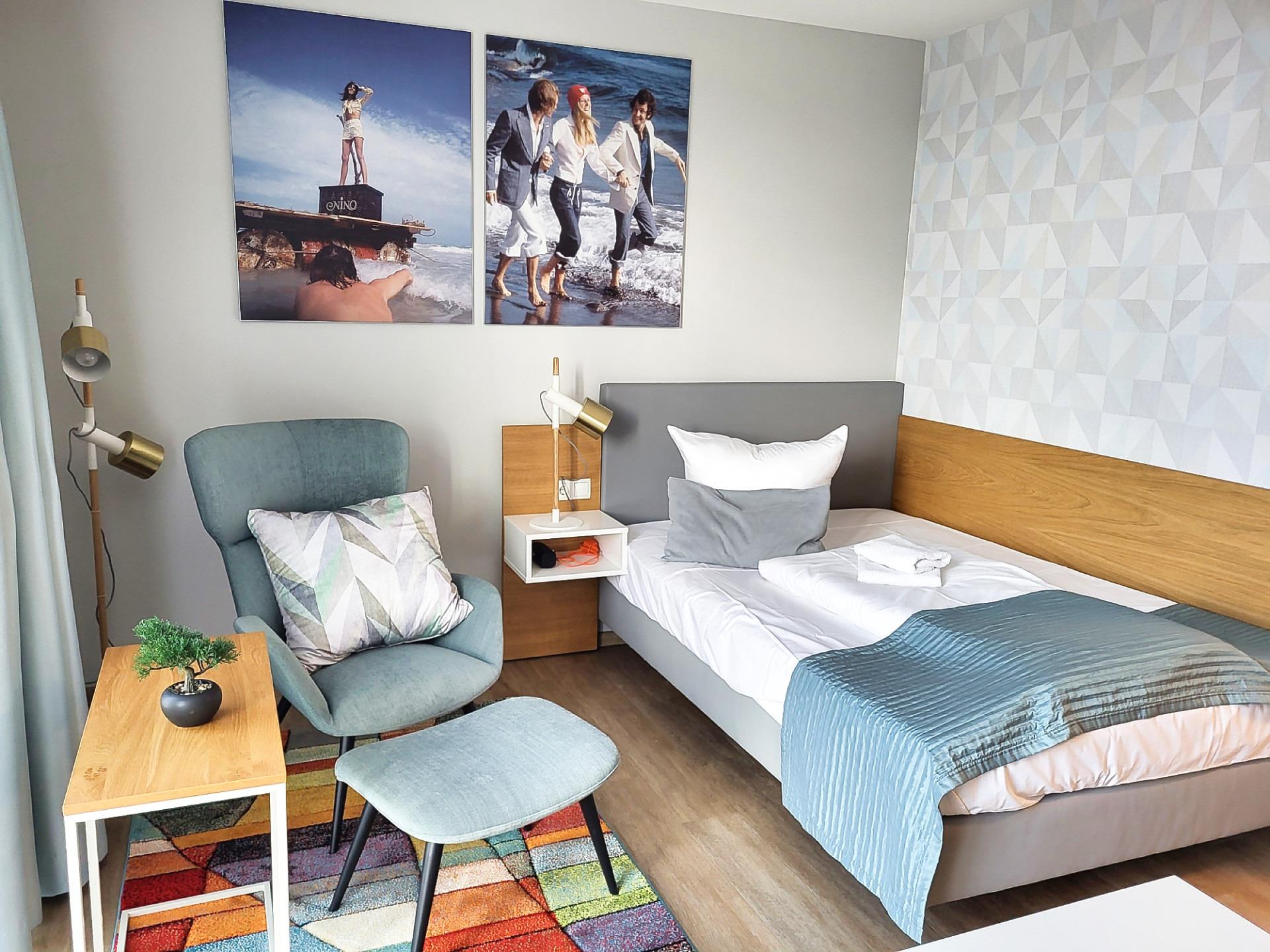 Im kompletten Einrichtungsbereich wurde auf höchste Qualität und Funktionalität gesetzt. Das überzeugt! Gut durchdacht und liebevoll eingerichtet spiegelt das NINO-Boardinghouse die regionale Geschichte der Textilindustrie wider.