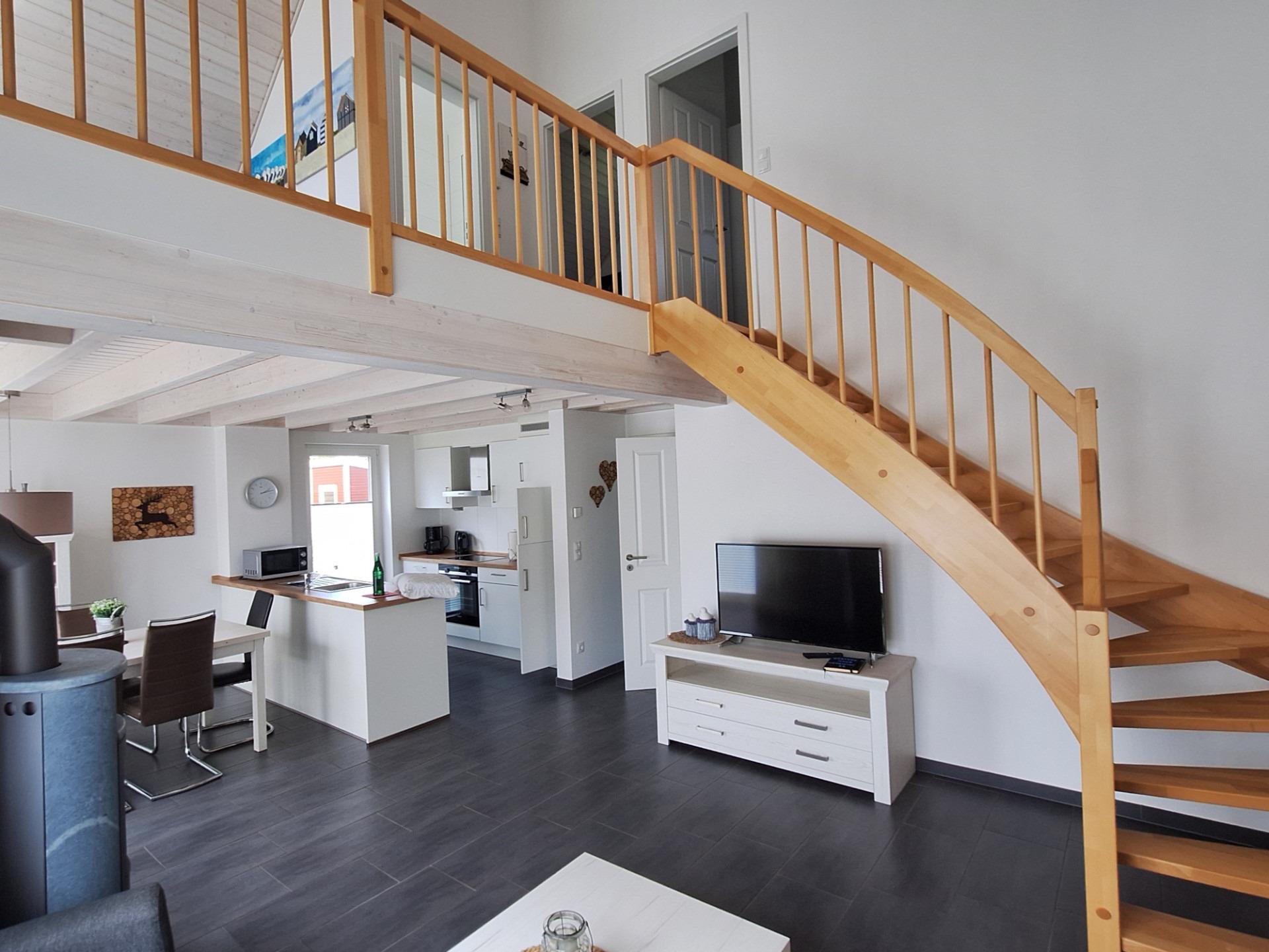 Nutzen Sie die Galerie mit Blick in den Wohnraum zum Träumen oder Schmökern in einer spannenden Lektüre. Eine Schlafcouch bietet weiteren Personen eine gemütliche Übernachtungsmöglichkeit.