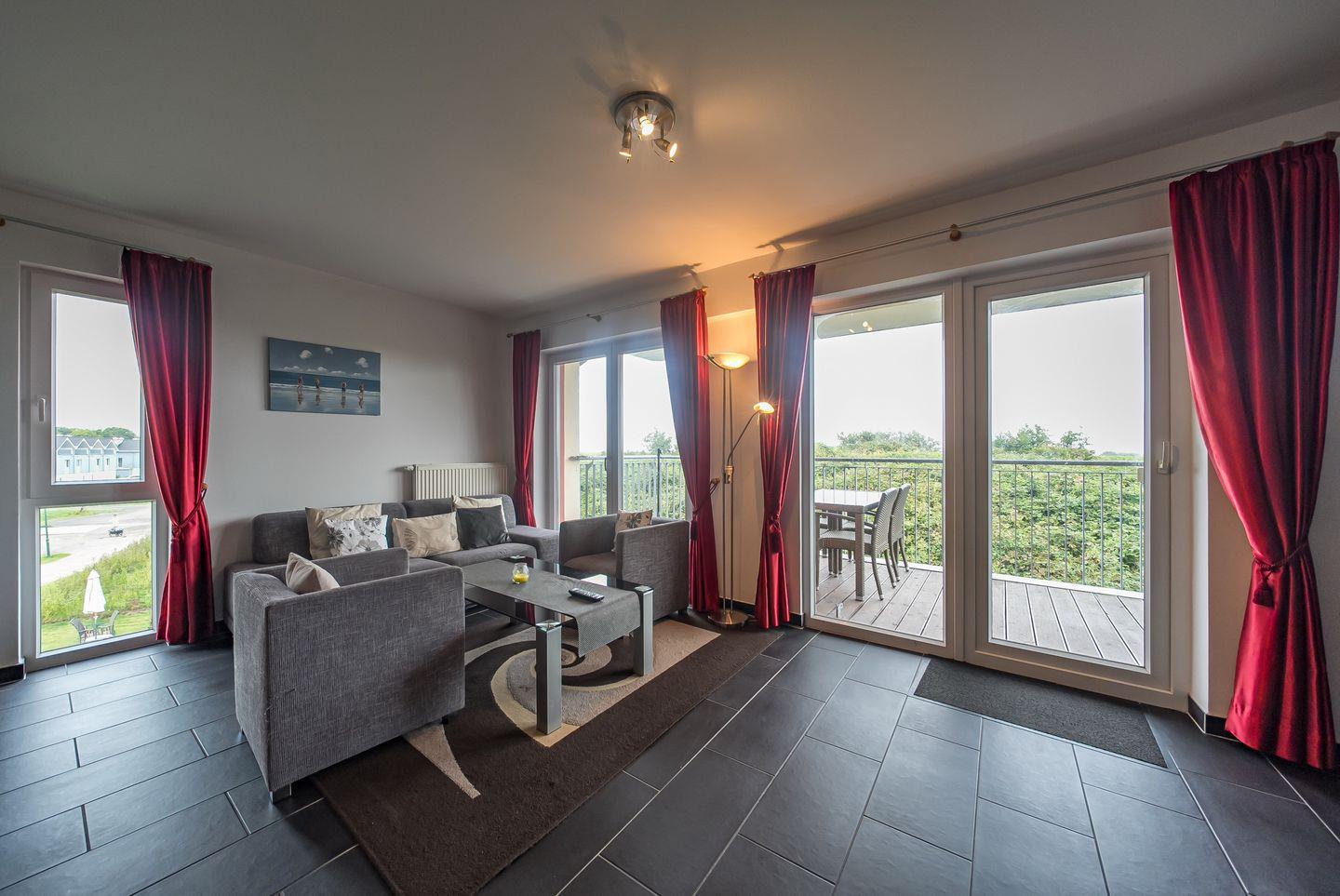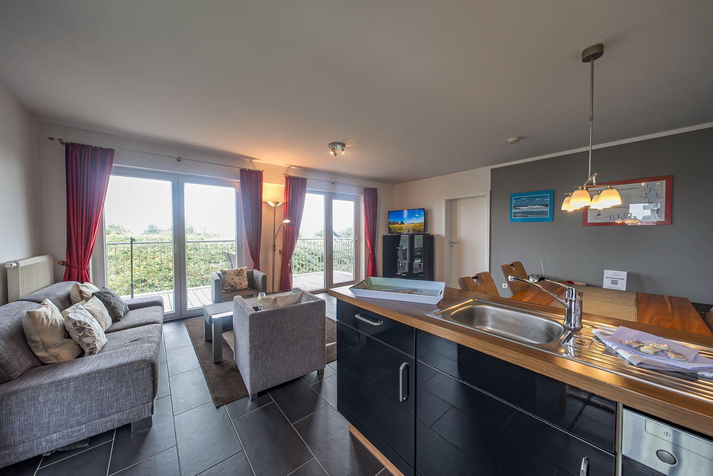 Die komfortable79 qm große 3-Zimmer-Ferienwohnung begeistert durch Meerblick, Sauna und Whirlbadewanne sowie ihren großzügigen Balkon. Bis zu 4 Personen können hier einen wunderbaren Nordsee-Urlaub verleben.