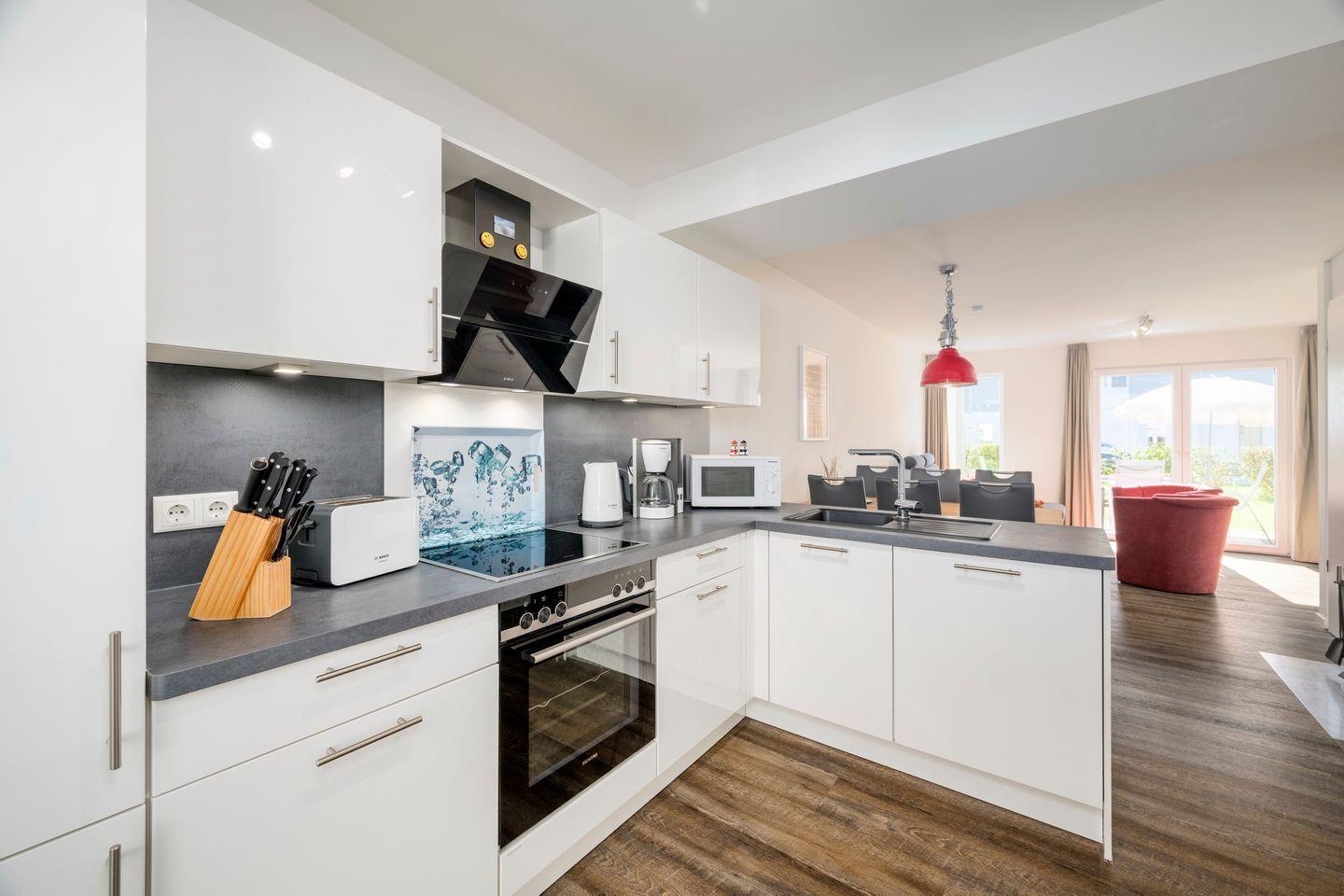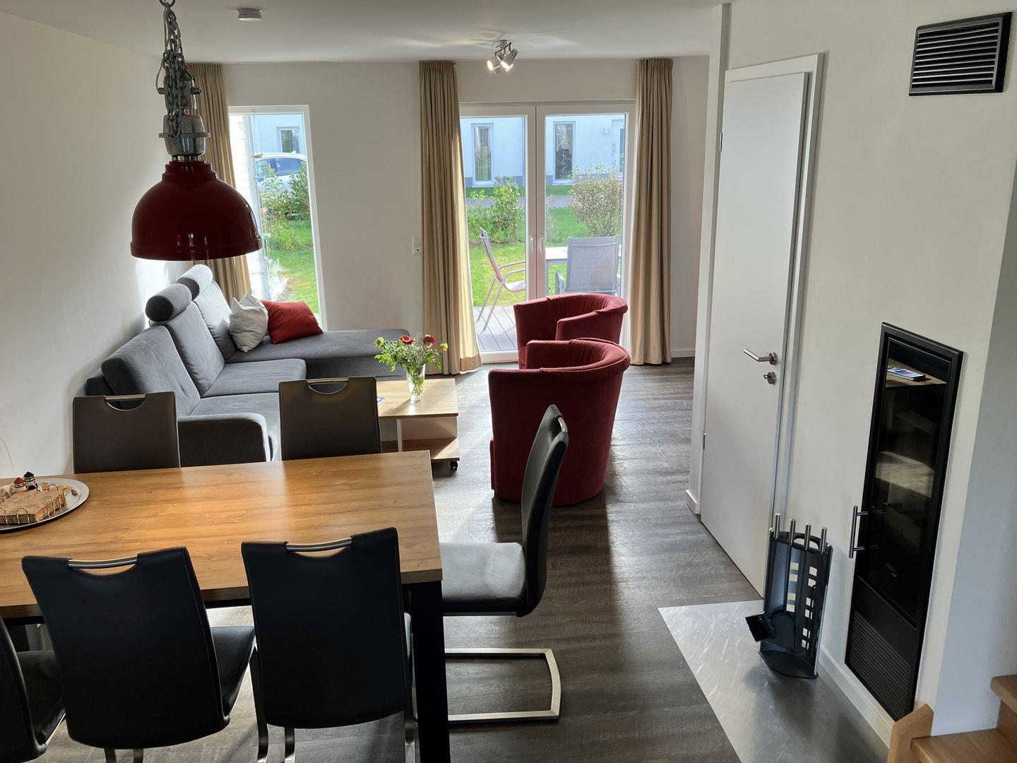 Modernes Ferienhaus an der Nordsee mit Sauna, Kamin, Terrasse und Meerblickbalkon am Naturschutzgebiet Wattenmeer.