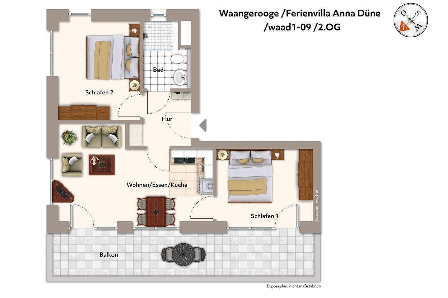 Die moderne Ferienwohnung befindet sich in Süd-West-Lage im zweiten Obergeschoss der Villenanlage. Der weitläufige Sandstrand und die Promenade sind nur wenige Meter entfernt. In der unmittelbaren Umgebung findet ihr zahlreiche Einkaufsmöglichkeiten, Restaurants und Cafés. Freizeitangebote wie z. B. das Meerwasser-Freizeitbad, das Tennis-Center oder die Surfschule sind fußläufig bequem zu erreichen.