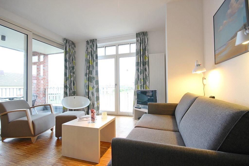 Helles Ferienapartment mit Loggia, nur 100 m vom Sandstrand auf Wangerooge entfernt.