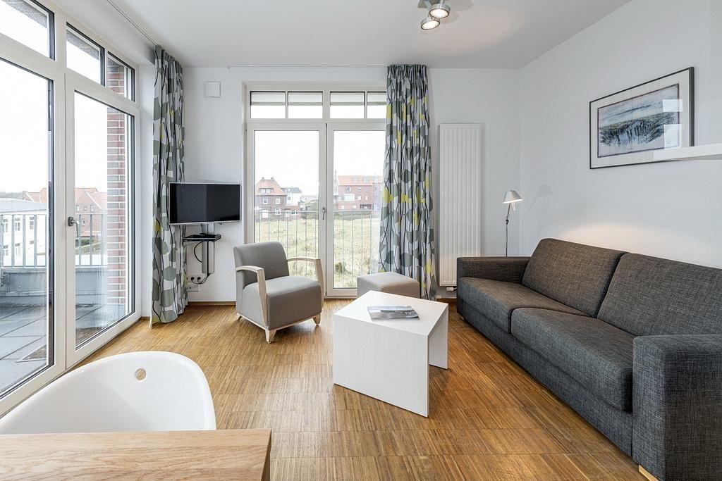 Bitte beachtet, dass es sich bei diesem Apartment um ein Nichtraucher-Apartment handelt und Haustiere nicht zugelassen sind. Eine eigene Waschmaschine befindet sich in der Ferienwohnung. Die Anlage verfügt über einen Lift. Im benachbarten Aparthotel Anna Düne steht euch das einmalig gelegene Restaurant Friesenjung zur Verfügung (externer Betreiber). Hier könnt ihr euch kulinarisch verwöhnen lassen und dabei einen wundervollen Blick auf die Nordsee genießen.