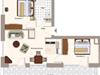 Die 64 m² große 3-Zimmer Ferienwohnung ist für bis zu 6 Personen geeignet. Besonders hervorzuheben ist der sonnige und großzügige Balkon in Südlage.
