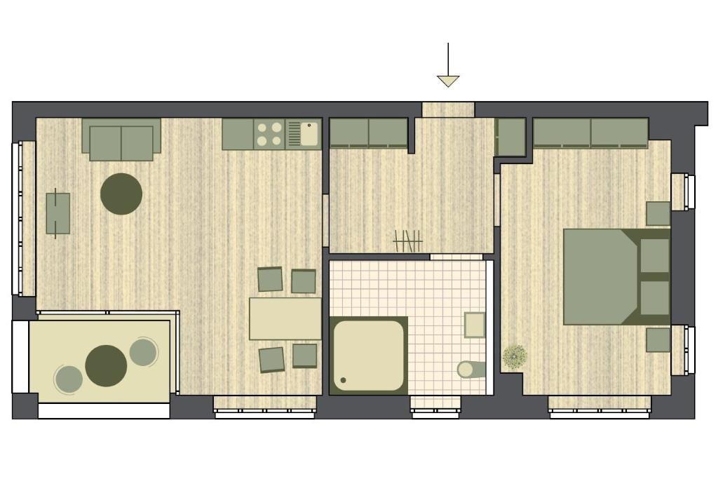 Die 59 m² große 2-Zimmer Ferienwohnung ist für bis zu 4 Personen geeignet. Besonders hervorzuheben ist die geschützte und sonnenreiche Loggia in Süd-Ost-Lage.