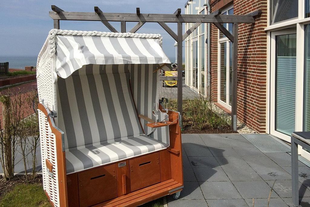 Modernes Apartment mit West-Terrasse, eigenem Strandkorb und seitlichem Meerblick am Nordseeheilbad Wangerooge.