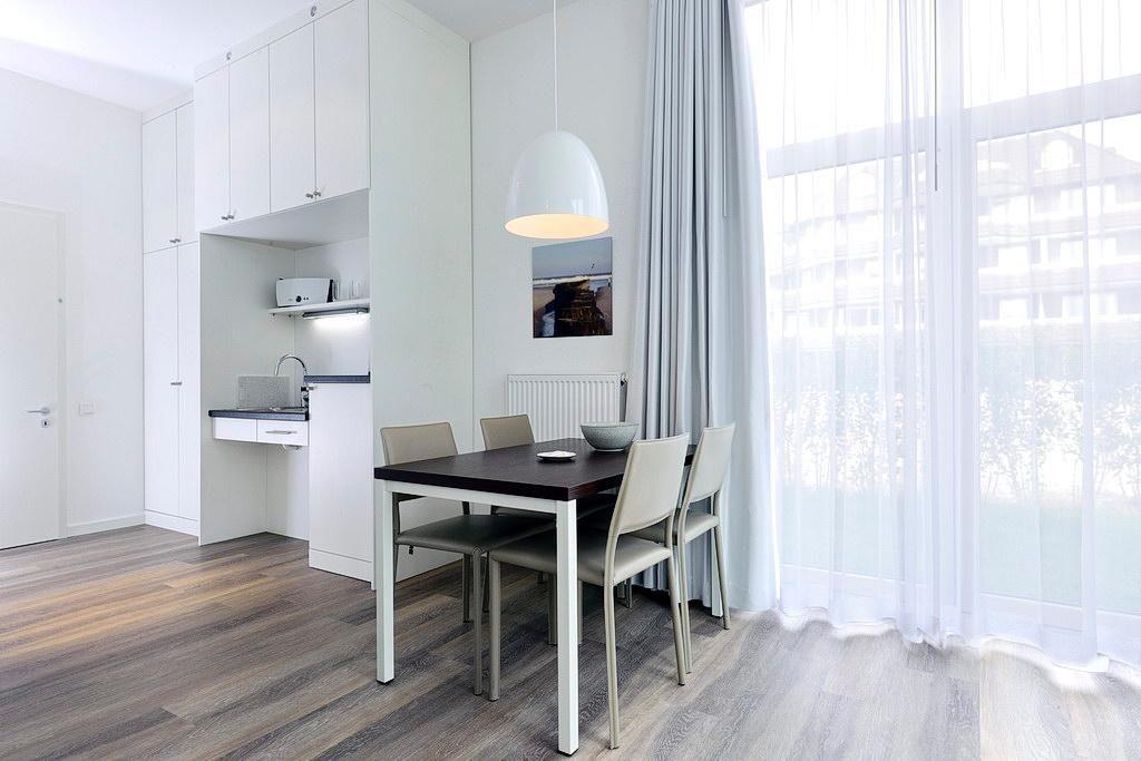 Das Apartment ist mit einer kleinen, aber feinen Pantryküche ausgestattet. Diese verfügt u. a. über ein Gefrierfach, eine Kaffeemaschine, einen Toaster und einen Wasserkocher. Das stilvolle und behindertenfreundliche Bad ist mit einer großzügigen Dusche und Sitzgelegenheit ausgestattet. Der Spiegel über dem Waschtisch ist verstellbar und neben dem WC befinden sich Griffe. Zudem sind Badeingang und alle weiteren Türen im Apartment 95 cm breit. Im Badezimmer befinden sich zudem ein Föhn und Kosmetikspiegel. Das moderne Schlafzimmer verfügt über ein Doppelbett, im Wohnzimmer stehen euch ein großer Flatscreen-TV, eine HiFi-Anlage und eine Einzelschlafcouch zur Verfügung. Ein Kinderbett kann gegen Entgelt im Wohnbereich aufgestellt werden. Nach einem erholsamen Urlaubstag könnt ihr wahlweise auf den beiden Terrassen entspannen.