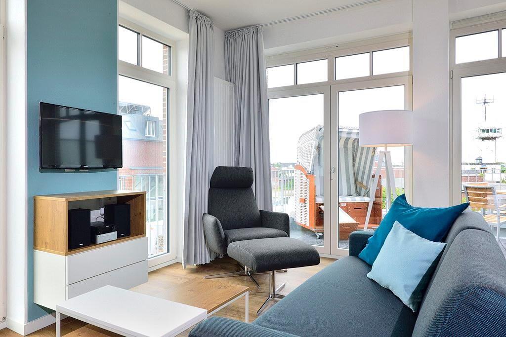 Modernes Ferienapartment mit Meerblick, Balkon und Strandkorb auf Wangerooge.