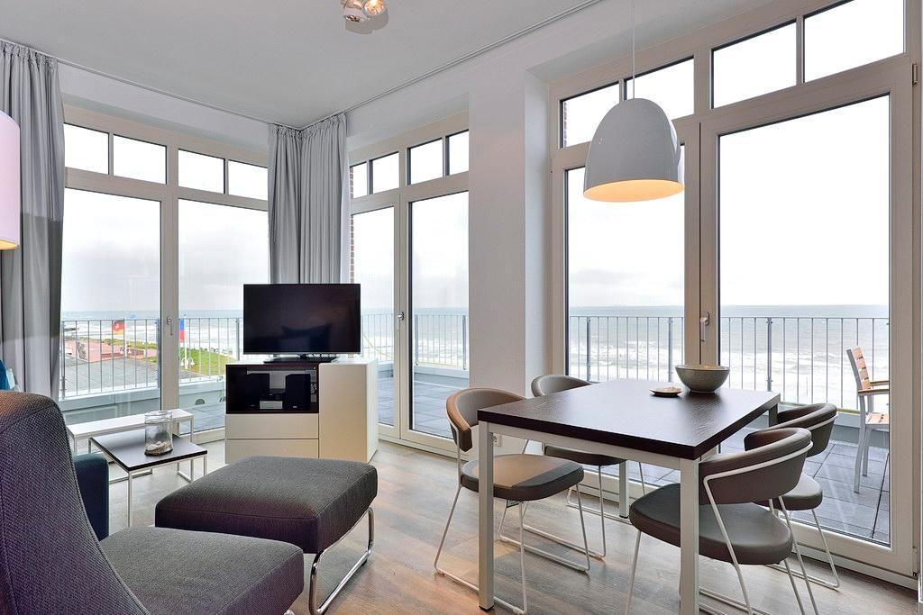 Dieses 2-Zimmer-Apartment der Extraklasse besticht durch seine hervorragende Lage mit grandiosem Meerblick! Es verfügt über 67 m² für bis zu 4 Personen. Der überaus großzügige Balkon verläuft über zwei Seiten des Apartments und liegt somit an der Nord- und Westseite des Aparthotels. Hier genießt ihr einen einmaligen Panoramablick auf die Nordsee und die Strandpromenade!