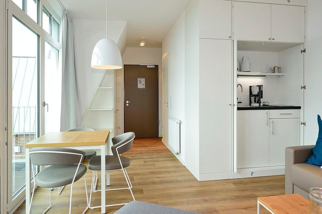 Das 33 m² große und moderne 1-Zimmer Apartment im dritten Obergeschoss des Aparthotels besticht durch seinen Penthaus-Charakter und ist für bis zu 3 Personen geeignet. Besonders hervorzuheben sind die hochwertige Ausstattung und die wunderbare Südlage des großzügigen Balkons. Hier könnt ihr sonnige und erholsame Urlaubstage und laue Sommerabende verleben.