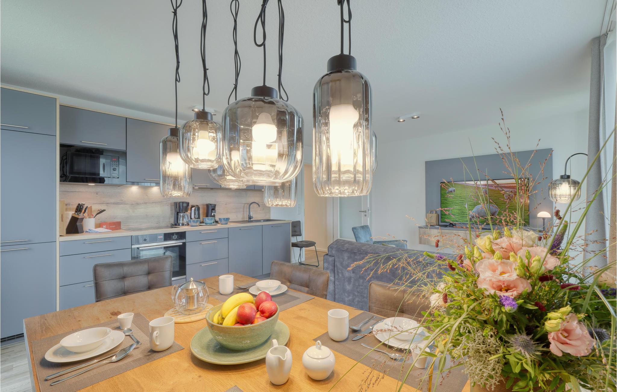 Herzlich willkommen auf Nordstrand, einer traumhaften Halbinsel an der schleswig-holsteinischen Nordseeküste im UNESCO Weltnaturerbe Wattenmeer. Das moderne Haus mit mehreren Ferienwohnungen ist ein wahres Juwel inmitten der Natur, die Lage direkt hinter dem Deich lässt das Herz eines jeden Nordseefans höherschlagen. Der moderne maritime Ausdruck der exklusiven Ferienwohnung versetzt Sie sofort in Urlaubsstimmung. Großzügige Fensterfronten lassen viel Tageslicht herein und bieten einen atemberaubenden Blick auf die umliegende Landschaft. Mit seinem Fokus auf Nachhaltigkeit ist das Ferienhaus der ideale Ort für Urlauber, die Wert auf Erholung in Einklang mit der Natur legen. Beginnen Sie Ihren Tag mit einem leckeren Frühstück im gemütlichen Wohnzimmer mit offener Küche oder genießen Sie den ersten Kaffee auf dem Balkon mit wunderbarer Aussicht.