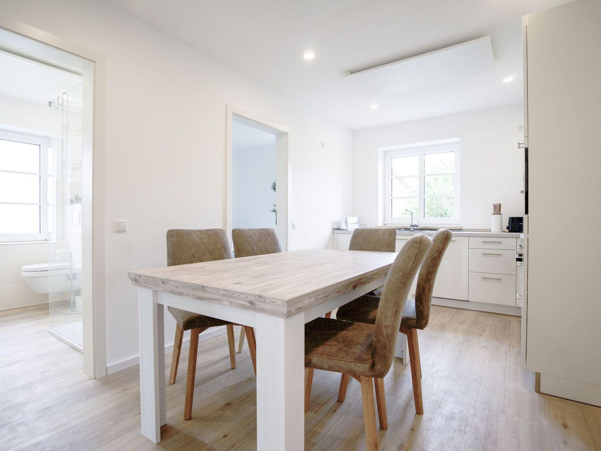 Eine schicke, moderne Ferienwohnung mit allen Räumen auf einer Ebene, Terrasse mit Blick auf die Holländer-Windmühle direkt nebenan, Duschbad und Platz für die ganze Familie oder zwei Pärchen, was kann man sich für einen schönen Nordsee-Urlaub mehr wünschen.
