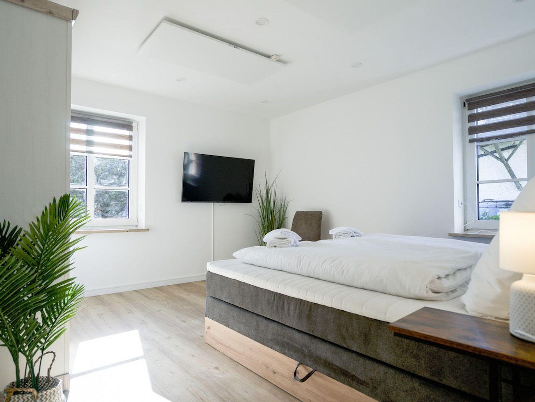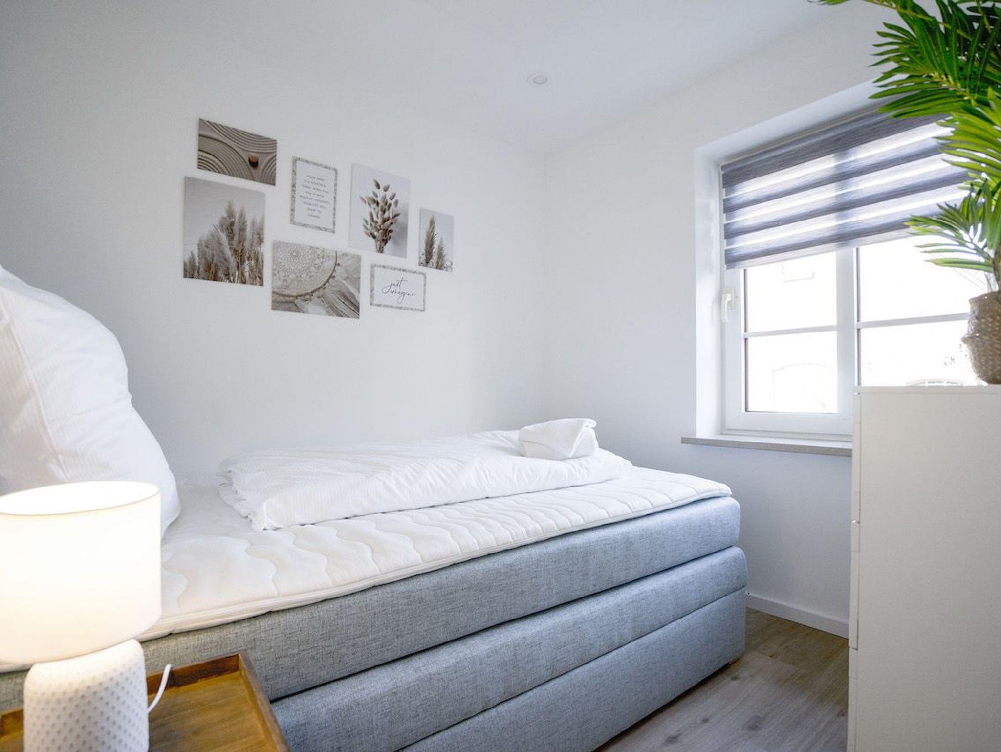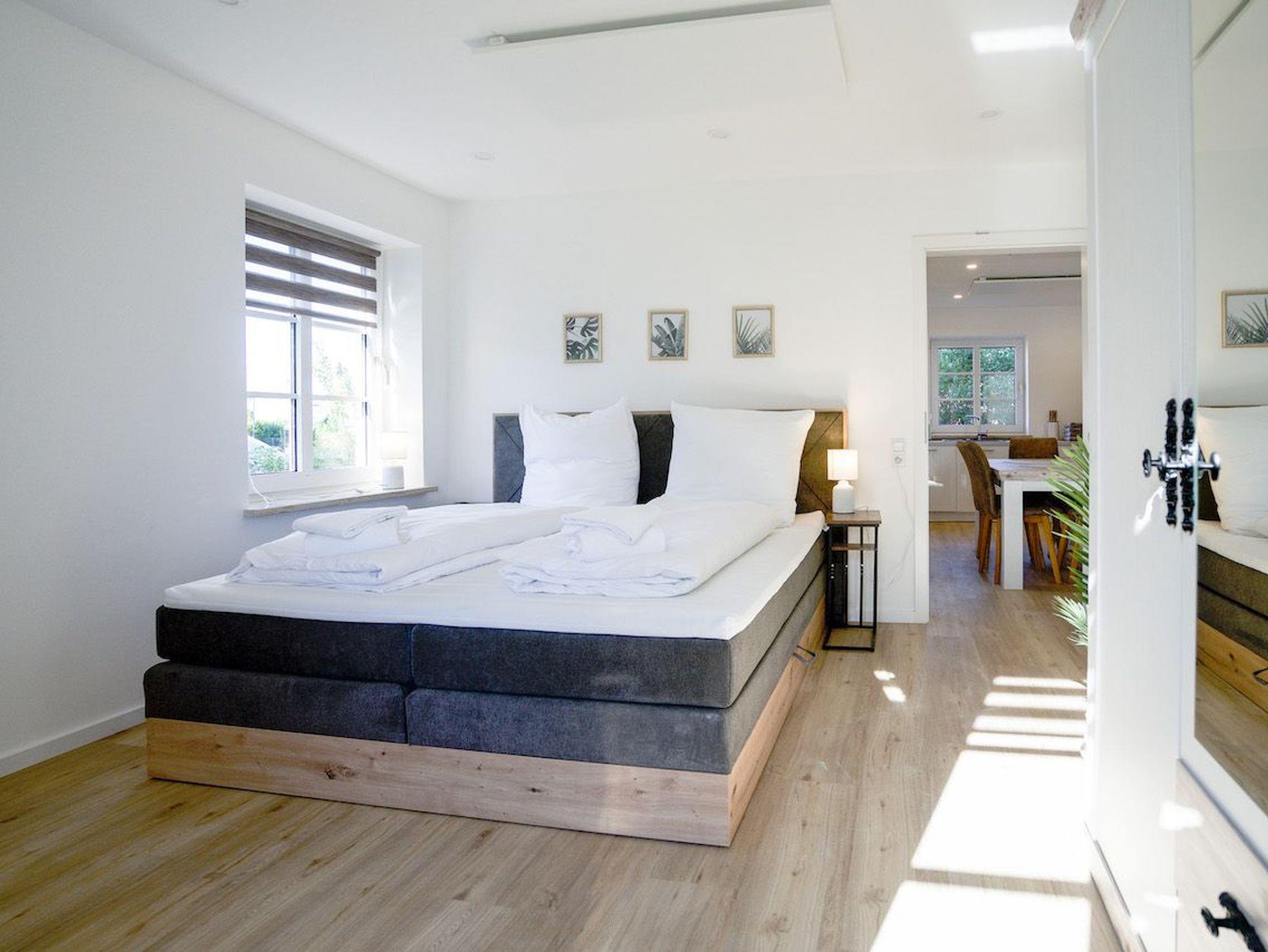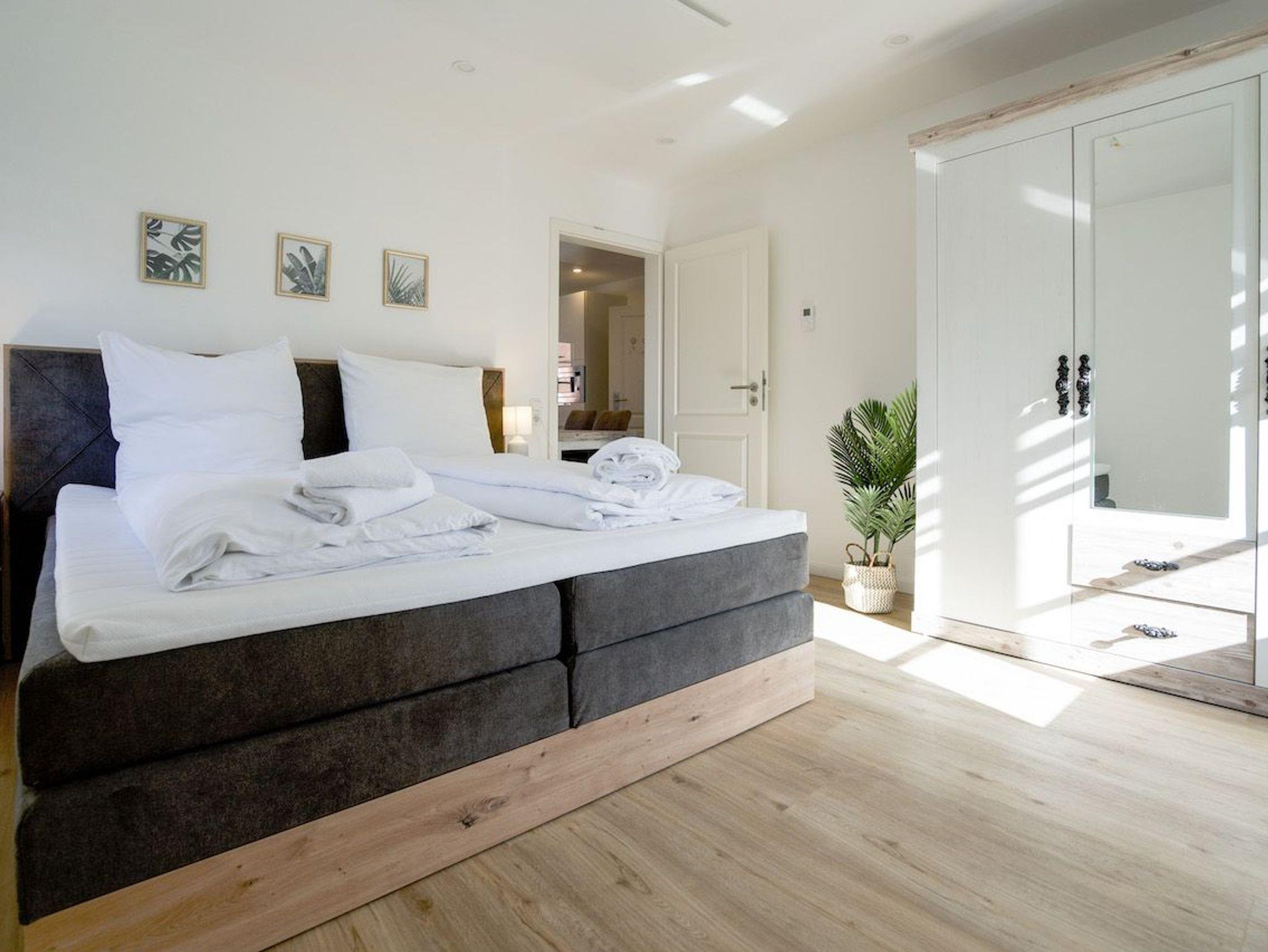 Das helle und geschmackvoll eingerichtete Appartement bietet Platz für bis zu sechs Personen. Die zwei Schlafzimmer (1 Doppelbett 180 x 200 und 1 franz. Doppelbett 160 x 200) sind jeweils mit einem Boxspringbett ausgestattet und verfügen über einen Smart-TV.