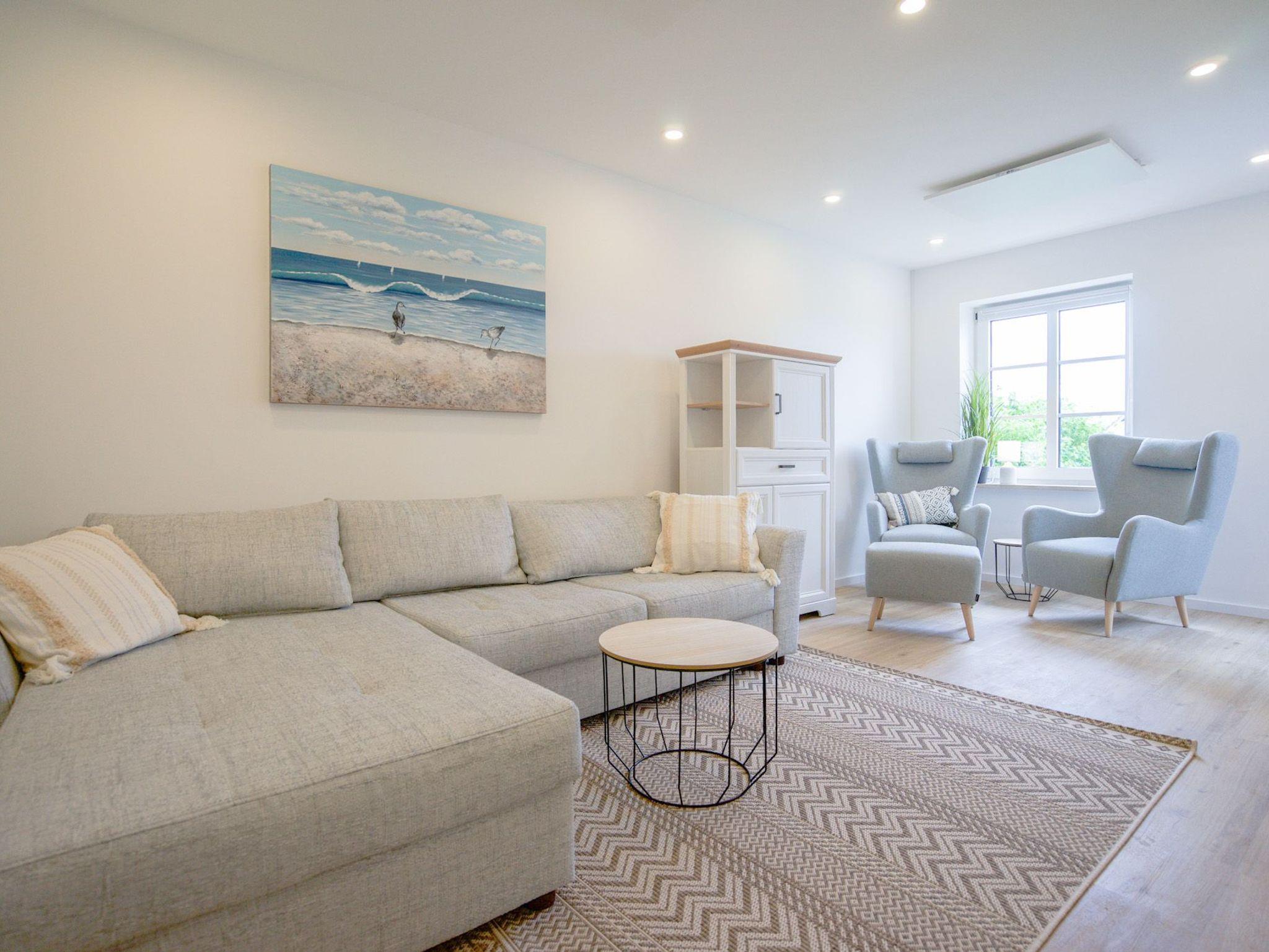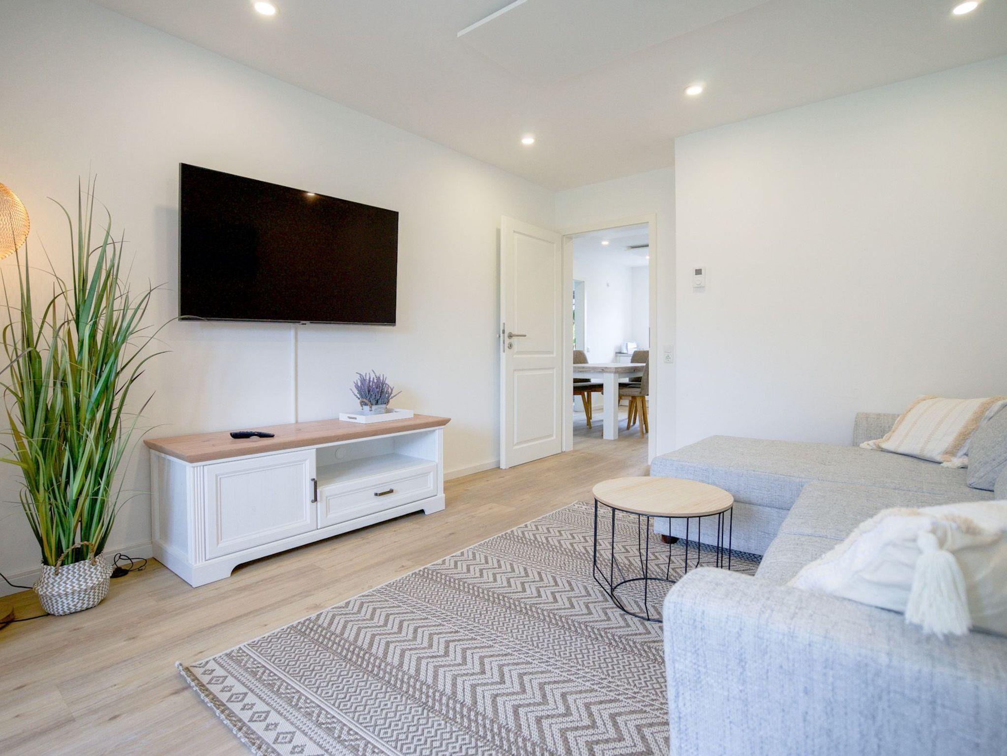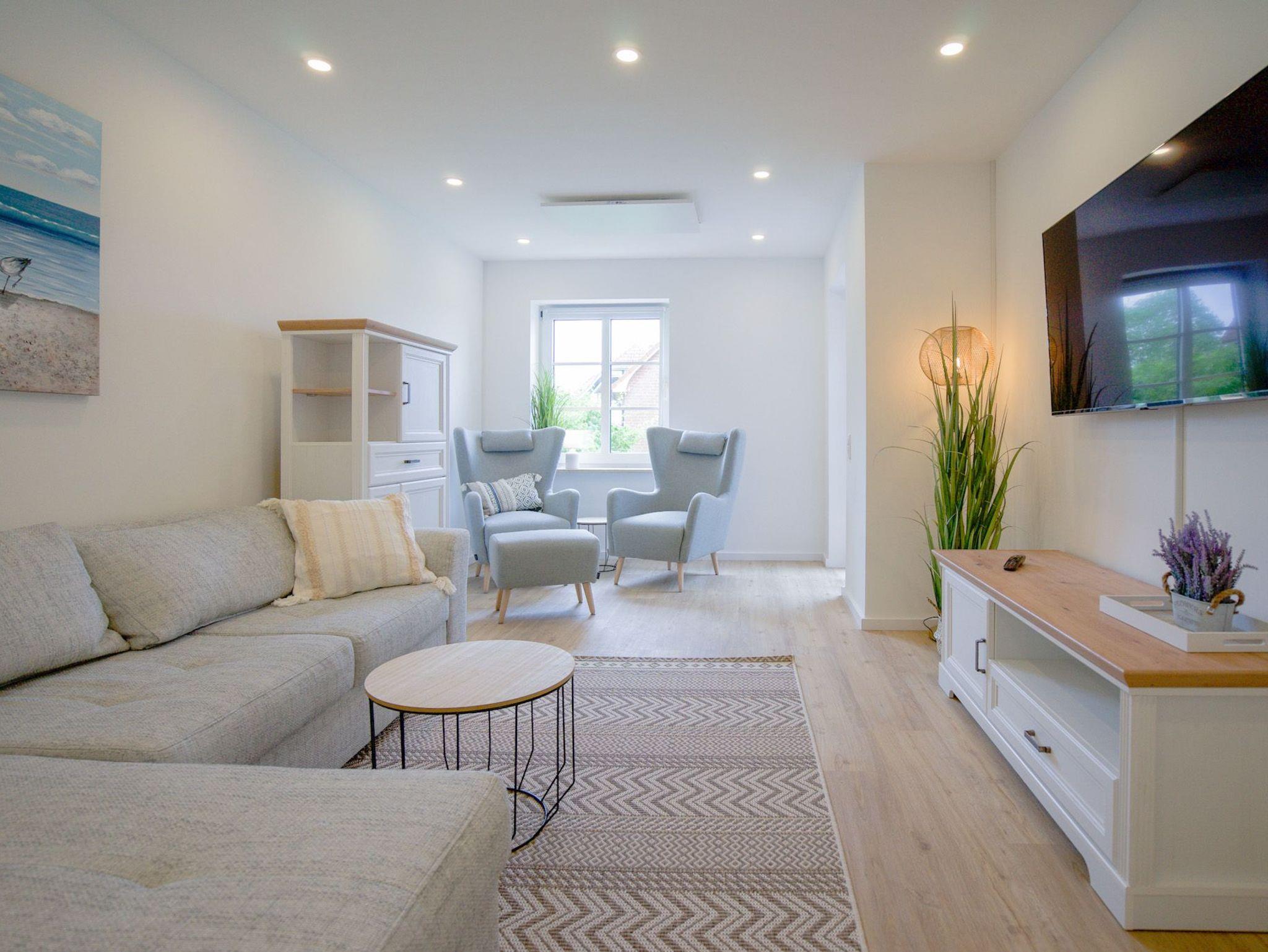 Im gemütlichen Wohnzimmer sorgt ein Flachbild-TV (SAT) für Ihre Unterhaltung.