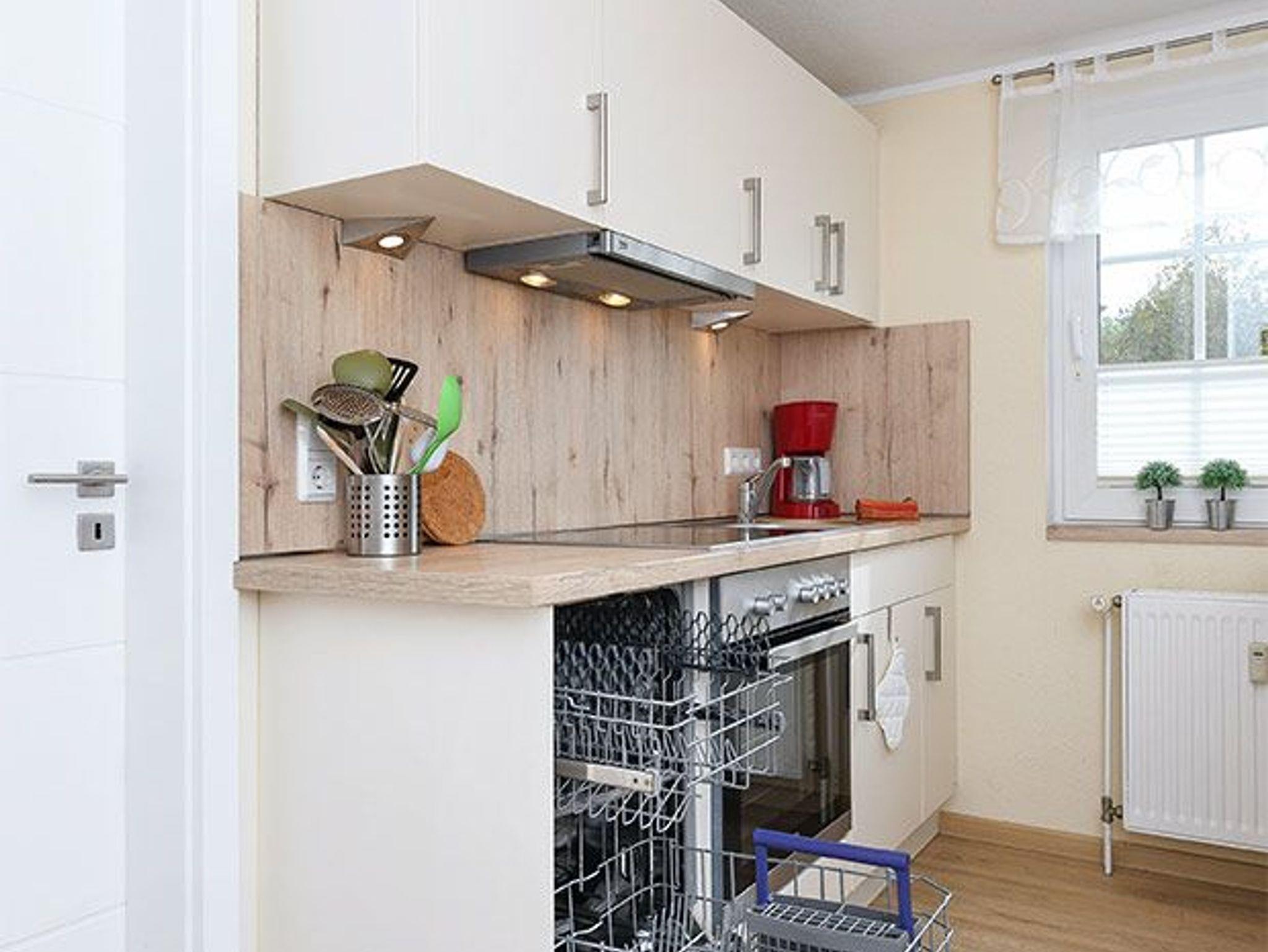 Größe ca. 35 Quadratmeter, Wohnraum mit integrierter Küche, Schlafzimmer, Kinderzimmer, Badezimmer mit Dusche, Waschtisch und WC, Obergeschoss, Terrasse, optimal für 2 bis 3 Personen und zusätzlich ein Kleinkind.