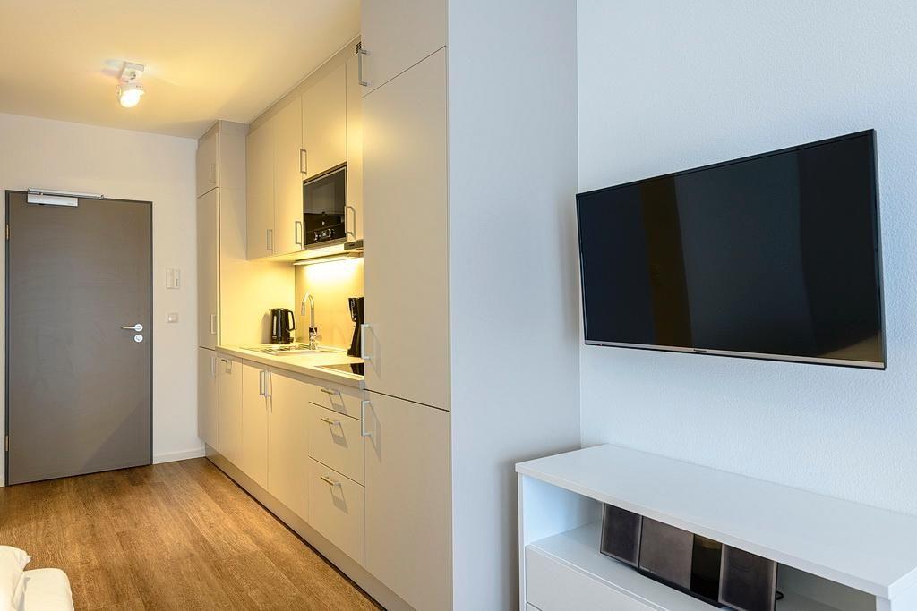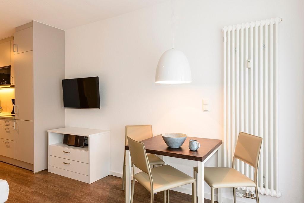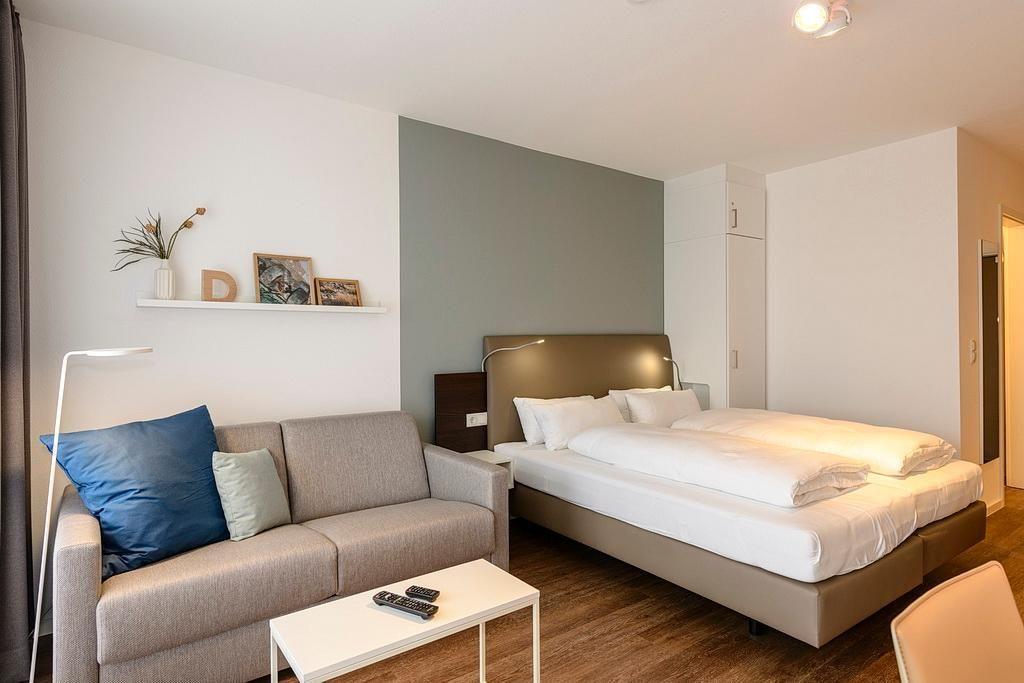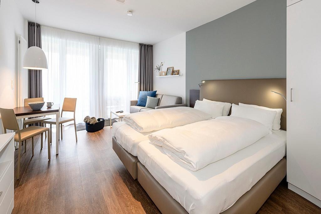 Das geschmackvoll eingerichtete Nichtraucher-Apartment verfügt über kostenfreies WLAN. Der Wohn- und Schlafbereich mit Schlafcouch bietet eine voll ausgestattete offene Küchenzeile mit Geschirrspüler, Gefrierfach, Kaffeemaschine, Toaster, Wasserkocher und Mikrowelle mit Backfunktion sowie ein Doppelbett, einen großen Flatscreen-TV und ein Radio. Das Apartment verfügt über einen Esstisch für 3 Personen und einen behaglichen kleinen Sitzbereich. Im stilvollen Badezimmer befinden sich eine große begehbare Dusche sowie ein Waschtisch mit Föhn und Kosmetikspiegel. Nach einem erlebnisreichen Urlaubstag entspannt ihr auf dem überdachten und mit Gartenmöbeln für 3 Personen ausgestatteten Balkon.