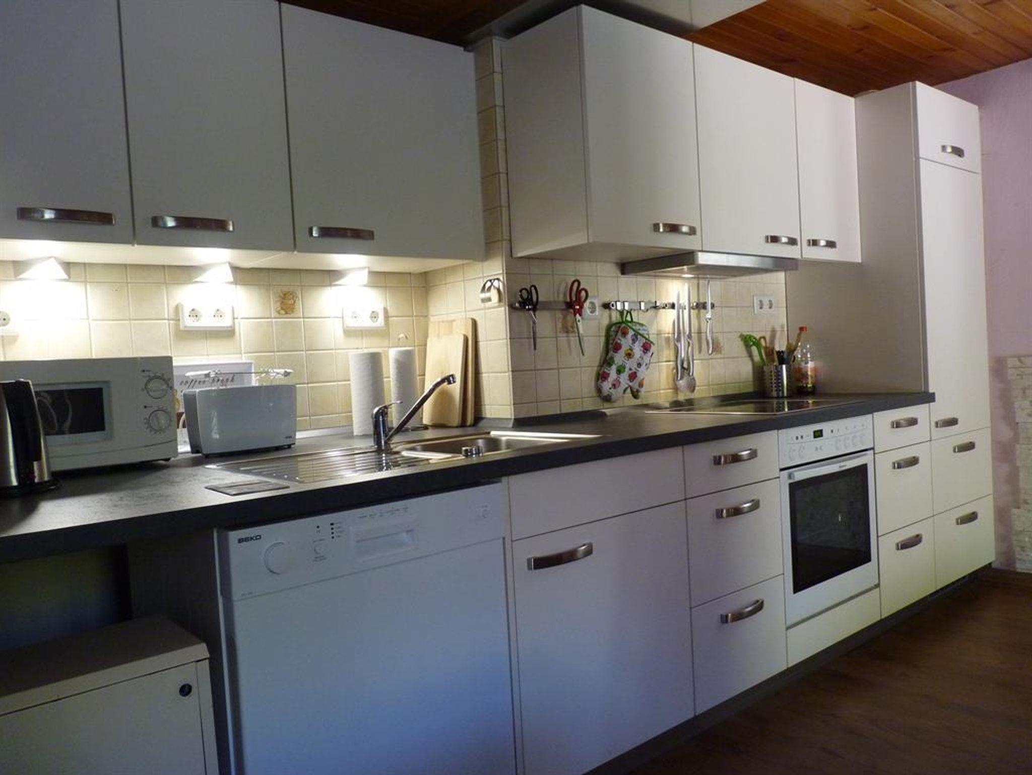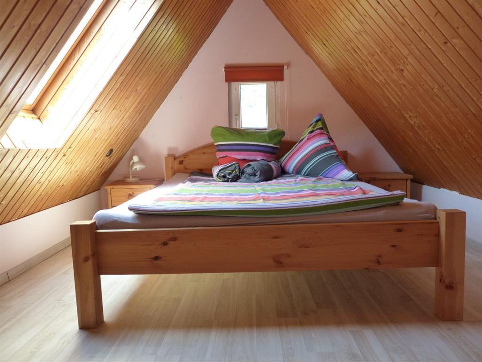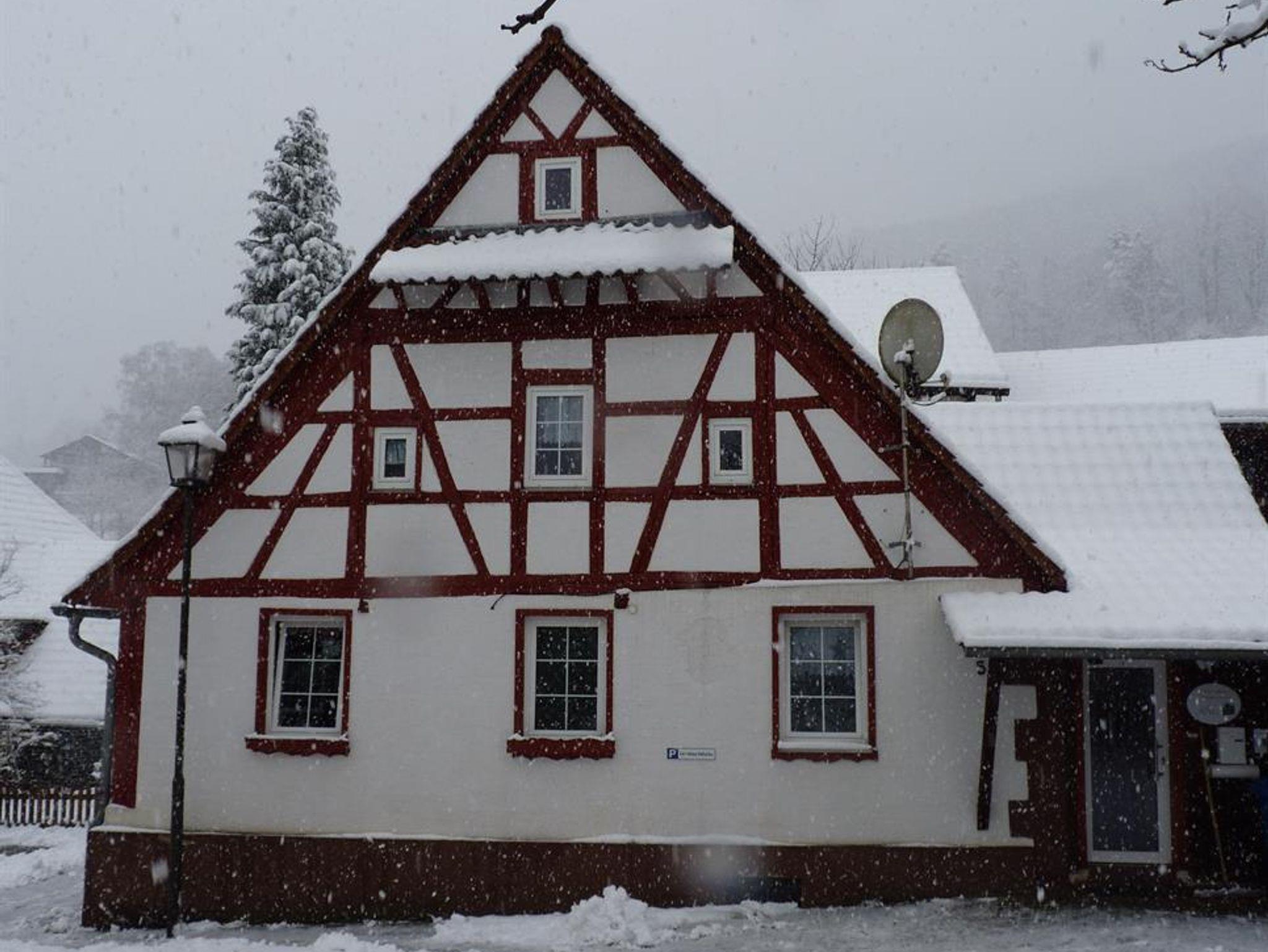 Das Ferienhaus Katharina vereint die urige Atmosphäre eines Fachwerkhauses mit der Bequemlichkeit einer zeitgemäßen Ausstattung. Der Wohnbereich im Erdgeschoss beinhaltet eine voll ausgestatteten Küche mit einer gemütlichen Essecke. In der Küche findet sich alles, was ein Selbstversorger brauchen könnte. Dazu gehört ein Kühlschrank, ein Gefrierschrank, ein Backofen mit Cerankochfeld, Spülmaschine, Kaffeemaschine, Toaster, Eierkocher und selbstverständlicher alles, was man an Koch- und Essgeschirr benötigen könnte. Daran schließt sich das Wohnzimmer mit einem großzügigen Sofa an. Hier können sie die Erlebnisse des Tages Revue passieren lassen oder die Medienvielfalt am großen Flachbildfernseher mit DVD-Spieler oder dem CD-Radio genießen. Im ersten Obergeschoss finden Sie zwei Schlafzimmer, jeweils mit einem großem Kleiderschrank. Das dritte Schlafzimmer liegt unterm Dach im zweiten Obergeschoss. Hier lässt sich die Nacht besonders behaglich verbringen. Das Badezimmer ist mit Badewanne, separater Duschkabine, Waschtisch und Toilette ebenfalls komplett ausgestattet. Zentral im Flur des Erdgeschosses steht ein funktionierender Holzofen. So kann man es sich an kühlen Herbstabenden mit einem Holzfeuer besonders gemütlich machen. Die Rasenfläche neben dem Ferienhaus bietet sich zum gemeinsamen Abendessen im Freien, zum Grillen oder einfach nur zum Sonne-Tanken an. Nach der Komplett-Renovierung bei unserer Übernahme im Jahre 2002 wurde das Ferienhaus 2012 teilrenoviert und Wohnzimmer, Essbereich und die Schlafzimmer komplett neu eingerichtet. Im Jahre 2014 wurden die Böden in Küche, Flur und zwei Schlafzimmern ersetzt und das Bad nochmals renoviert und ebenfalls neu eingerichtet.