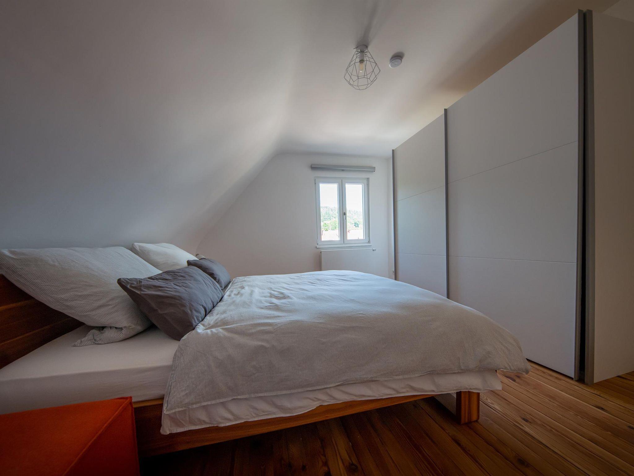Von Grund auf saniert und modern eingerichtet erwarten unsere Gäste im 2. OG drei Schlafzimmer mit großen Doppelbetten, zwei Duschbäder mit je einem WC und Doppelwaschtisch sowie ebenerdigen Duschen.