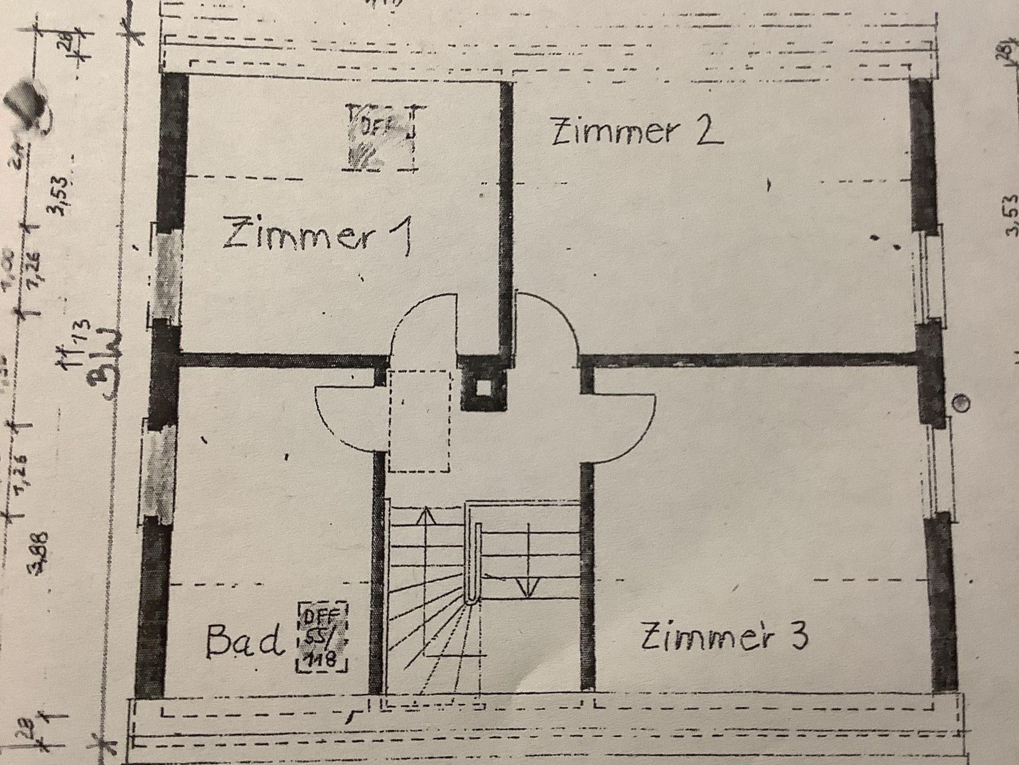 Ebenfalls im ersten Obergeschoss befindet sich ein großes Tageslichtbad mit Regendusche, Doppelwaschtisch und WC.