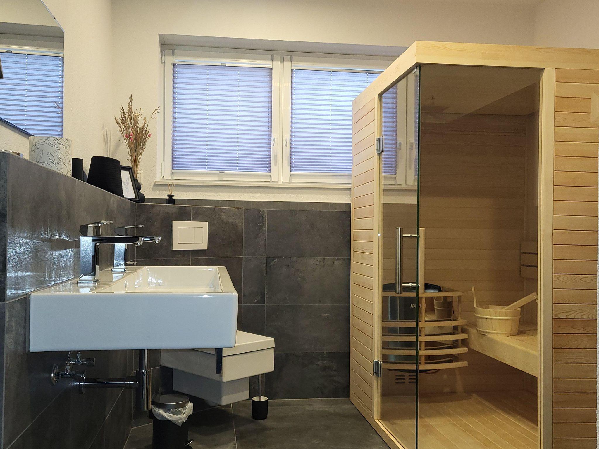 Modernes Ferienhaus (100 m², BJ 2024 ) für 2-6 Personen. Zwei Schlafzimmer (Doppelbetten) und eine Schlafcouch. Moderner, heller und offen gestalteter Wohnraum; Sonnenterrasse mit Grill; anspruchsvolle Ausstattung; Sauna im Haus . Fahrrad-Abstellraum ebenfalls im Haus mit direktem Zugang von außen und Lademöglichkeiten für ihre E-Bikes. Parkplätze direkt vorm Haus.
