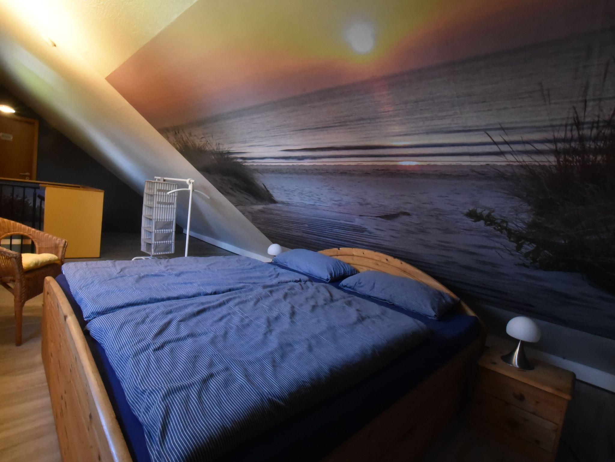 2 getrennte Schlafzimmer - EG: Boxspringbett 180 x 200 cm, OG: Doppelbett 180 x 200 cm. Großzügiger Wohn/ Essbereich mit Küche. Großzügiges Duschbad. Terrasse mit Strandkorb und Gartenmöbeln.