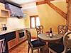 Die 101 qm große Maisonette Wohnung verfügt über ein Bad mit Whirlpool für zwei Personen, zwei Duschen und einem separatem Gäste-WC. Beide Schlafzimmer sind groß und gemütlich ausgestattet und verfügen über Doppelbetten (1,4mx2,0m). Des Weiteren befindet sich in der Maisonette Wohnung eine Küche, ein Wohnbereich mit Sofaecke und eine alte Wendeltreppe.