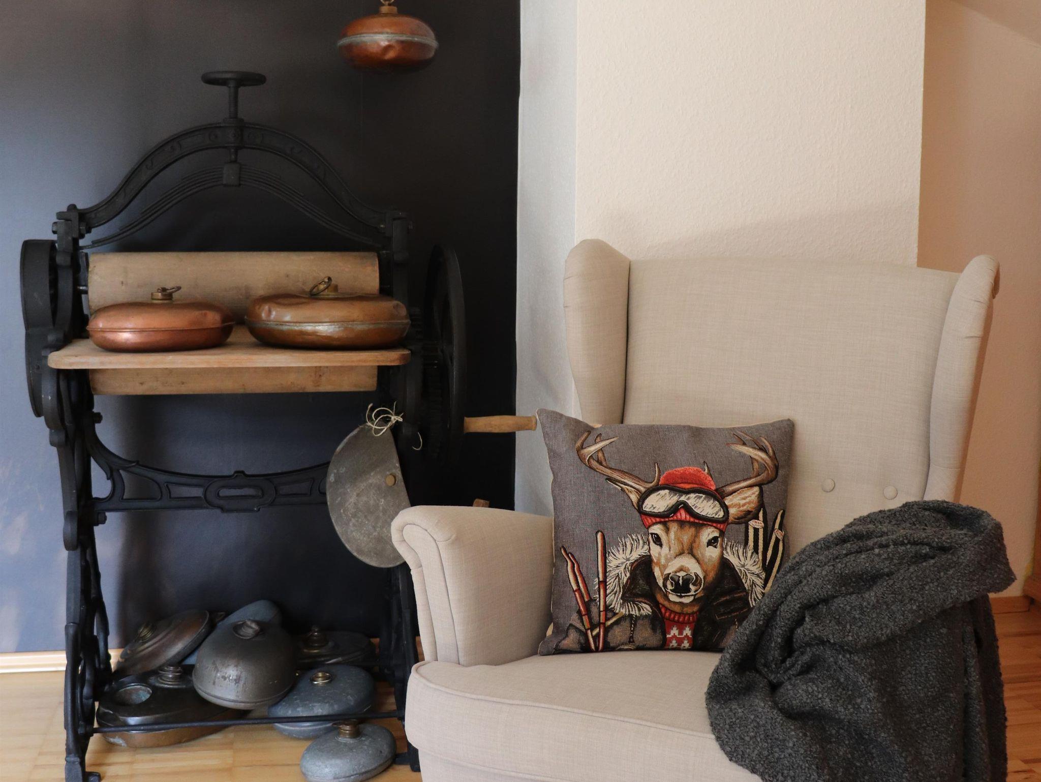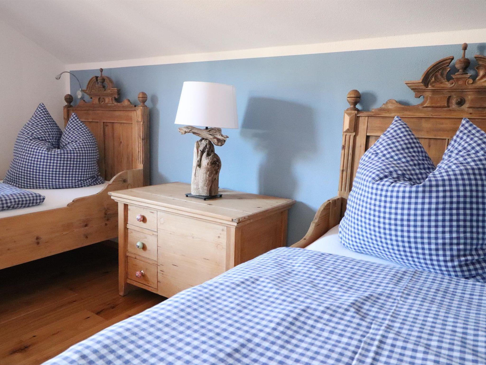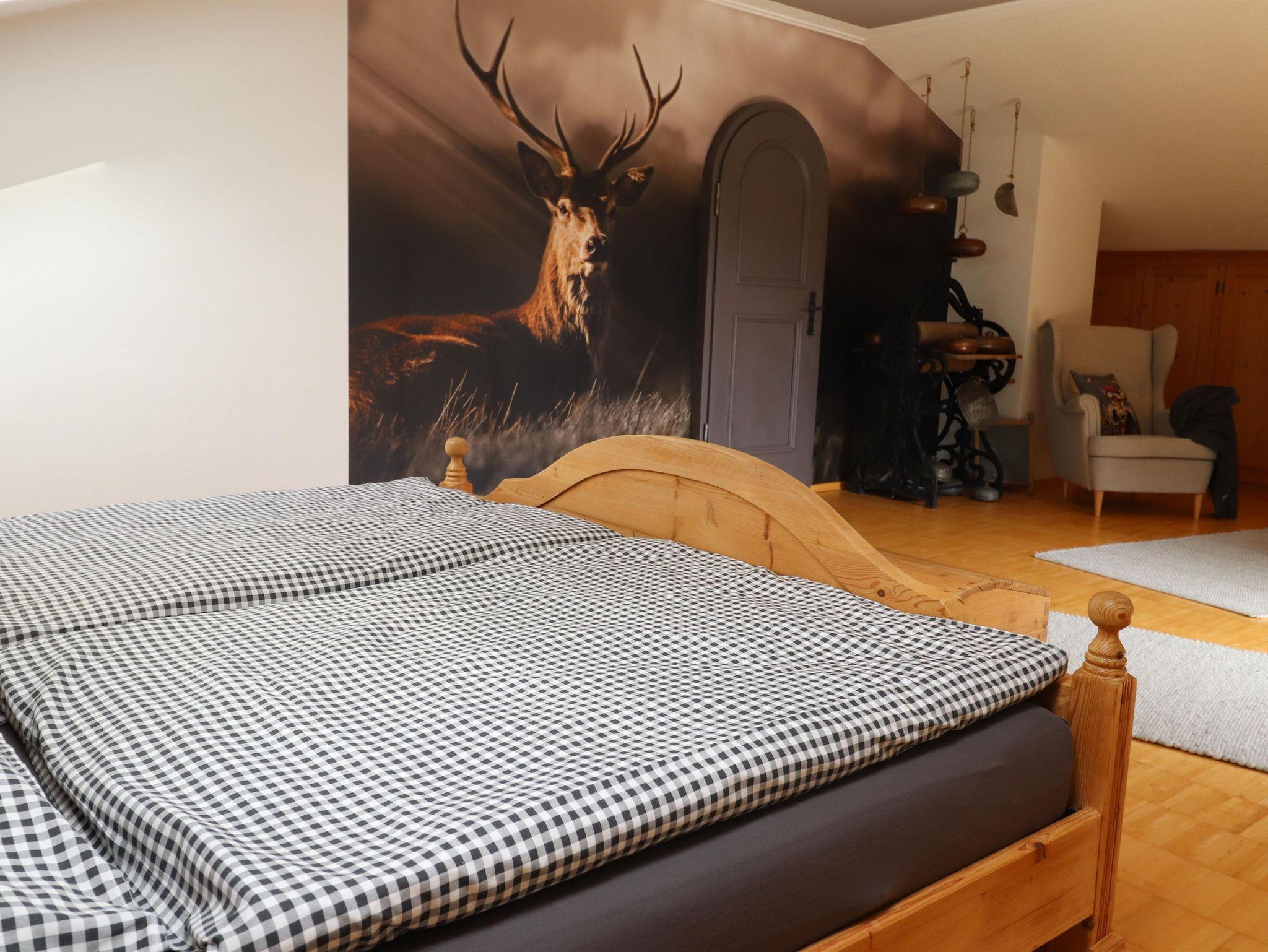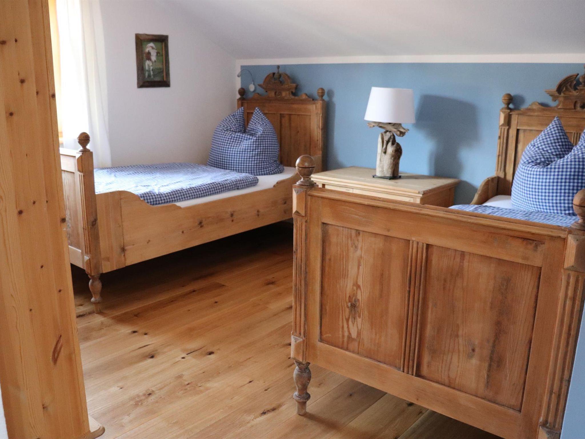 Genießen Sie einen entspannten Urlaub in unserer gemütlich in moderen Alpenstil eingerichteten 93m² Ferienwohnung in Oberammergau. Sie liegt im ersten Stock und ist bestens für Familien geeignet. Das 30m² große Schlafzimmer verspricht nicht nur Dank rückenschonender Matratzen einen erholsamen Schlaf, sondern lädt auch noch mit einer kleinen Couch und einem Lesesessel zum Verweilen ein. Im zweiten Schlafzimmer mit zwei Einzelbetten von Anno 1880 geraten Sie ins Träumen. Das großzügige Wohn- und Esszimmer mit großen 65 zoll SAT-TV und kostenlosen WLAN bietet genügend Platz für gemütliche Abende. Dort befindet sich ein großes modernes Ecksofa und eine gemütliche Essgruppe. Die gegenüberliegende Küche ist mit allen nötigen Küchenutensilien und technischen Geräten ausgestattet. Sogar ein Kaffeevollautomat ist vorhanden. Das Tageslichtbad verfügt über eine Dusche und einem antiken Waschtisch. Ein Süd- und Westbalkon mit entsprechenden Sitzgelegenheiten verleihen der Ferienwohnung einen Panoramablick auf den Naturpark der Oberammergauer Alpen. Die Ferienwohnung ist eine Nichtraucherwohnung und vor dem Haus sind ausreichend Parkplätze vorhanden. Gerne holen wir Sie auch vom Bahnhof ab.