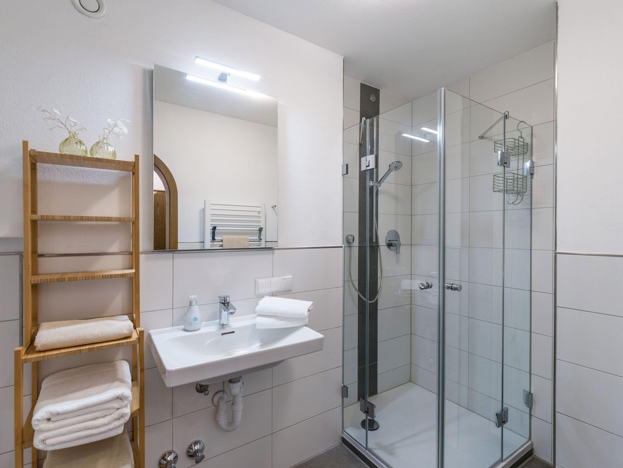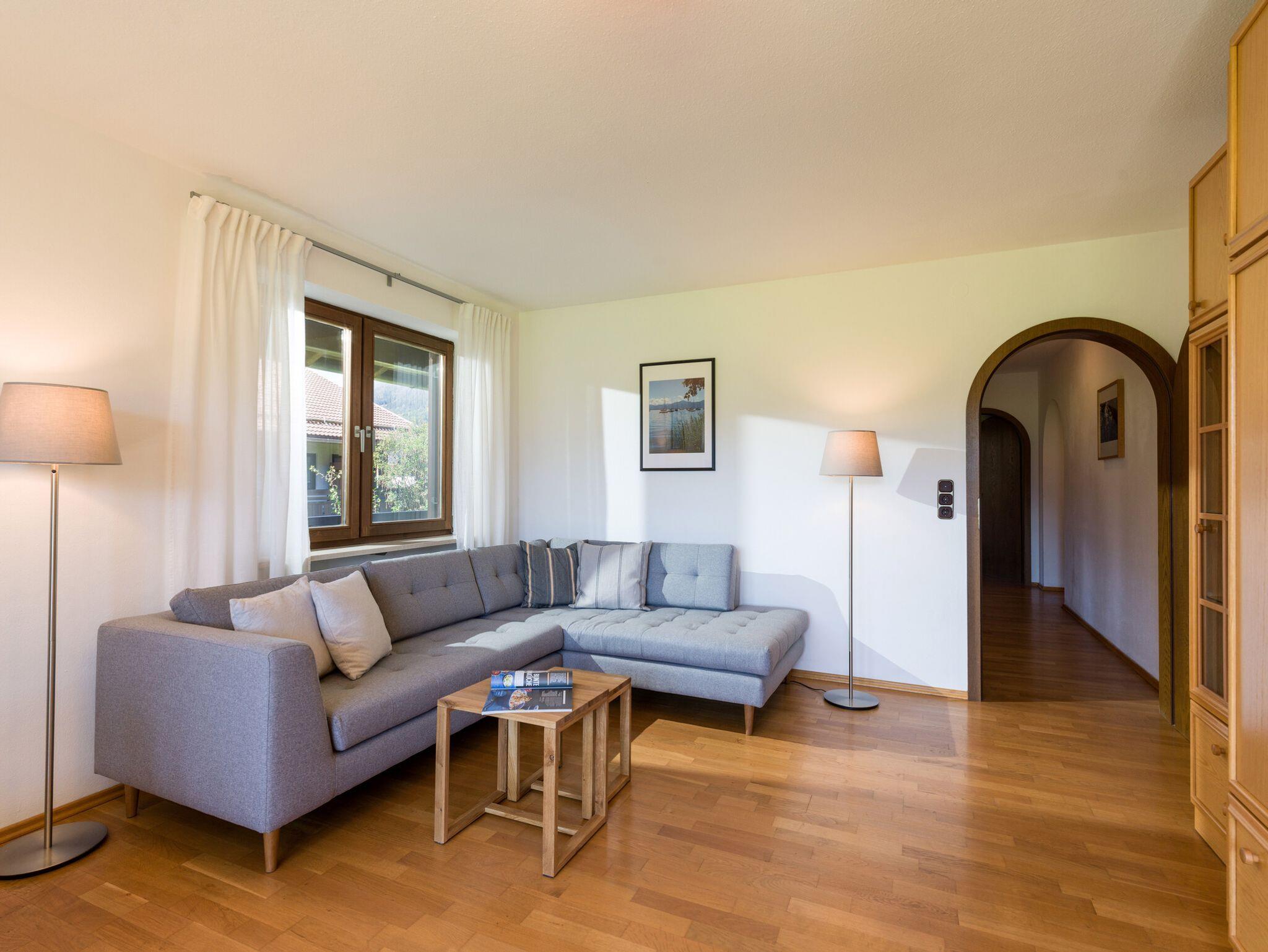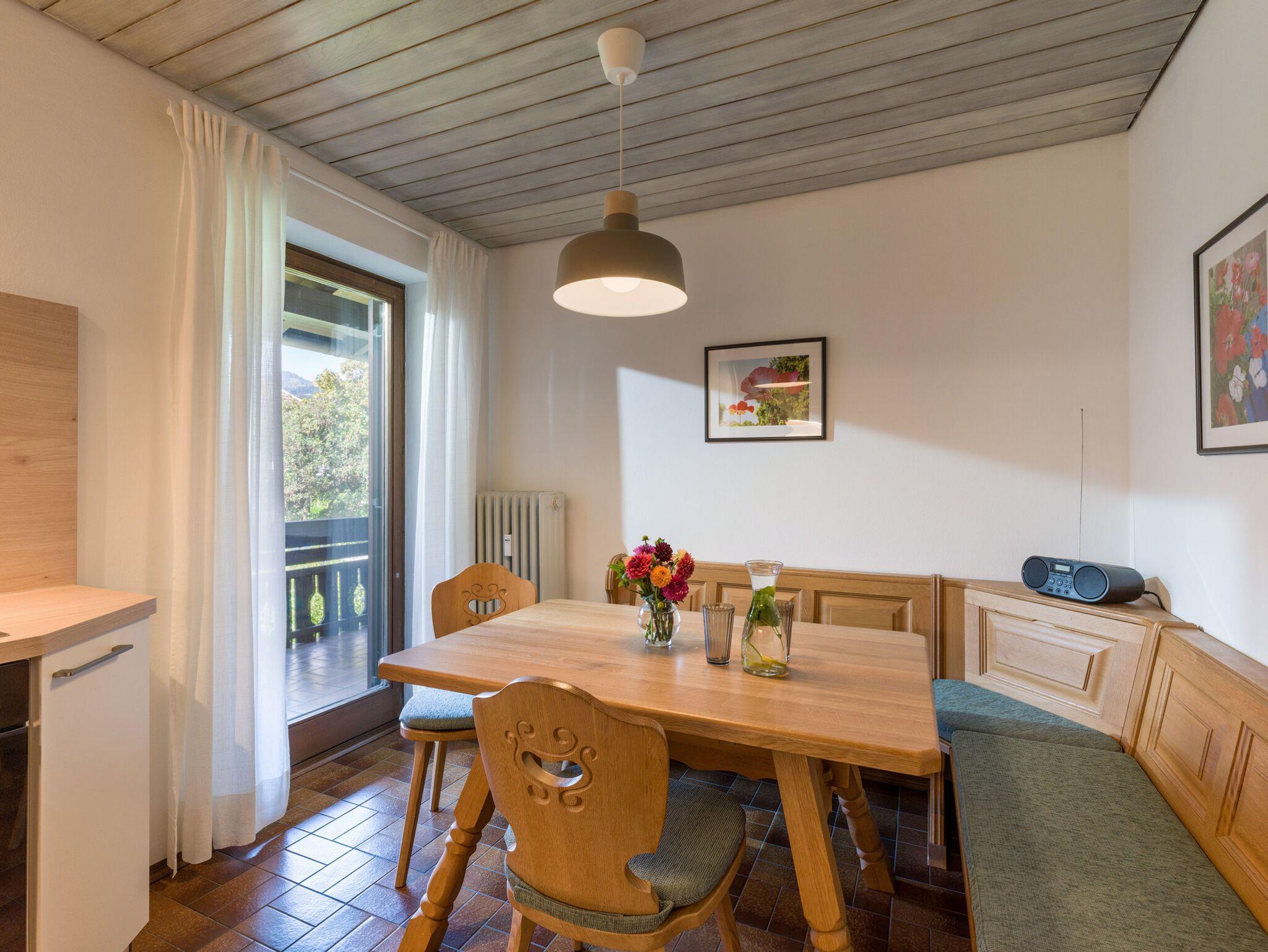 Vom Wohnzimmer aus gelangt man auf den Südbalkon mit Sitzmöglichkeit und Blick auf Garten und das Kaisergebirge. Das Zimmer ist mit einem großen Sofa, sowie einem Lesesessel ausgestattet, diese bieten Platz zum Verweilen und Entspannen. Zudem ist ein Schrankbett vorhanden, das Schlafgelegenheit für zwei weitere Personen ermöglicht. Einen Zugang zum Balkon Richtung Westen gibt es von der neuen Küche aus, auch dort befindet sich eine kleine Sitzmöglichkeit. Die Küche ist voll ausgestattet mit Geschirrspüler, Kühl-/Gefrierschrank, Herd mit Ceranfeld sowie Backofen, diversem Geschirr, Wasserkocher, Kaffeemaschine und Cafetera sowie einer gemütlichen Eßecke. Im Schlafzimmer Richtung Westen befindet sich ein Doppelbett sowie ein großer Schrank. Das Bad mit Dusche/WC wurde 2022 komplett erneuert.