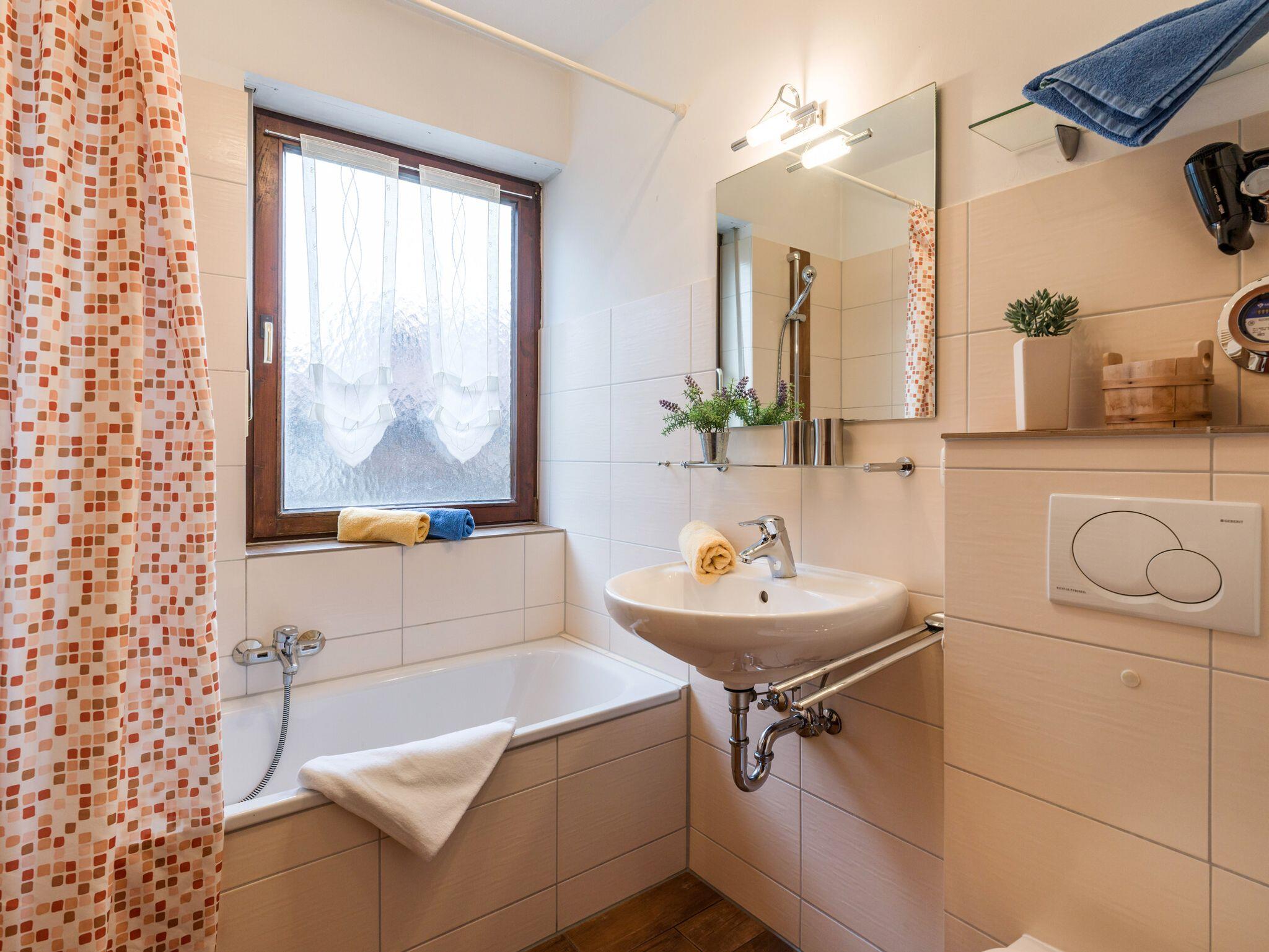 Gemütlich eingerichtete Ferienwohnung im Erdgeschoss mit separater Küche, Bad mit Badewanne, Schlafzimmer mit einem Doppelbett , einem hellen Wohnraum mit gemütlicher Essecke. Platz genug für 2 bis 4 Erwachsene oder einer kleinen Familie. Das Wohnzimmer ist mit einer Ausziehcouch für 2 Personen und einem Esstisch für 4 Personen ausgestattet. Der Balkon lädt nach einem ereignisreichen Tag zum Sitzen im Freien ein. Die Küche verfügt über einen Backofen, Kühlschrank,Spülmaschine 4- Plattenherd, Kaffeemaschine, Toaster, Wasserkocher und Küchenutensilien. Die Wohnung liegt in einer familienfreundlichen Anlage mit Spielplatz, Sauna, Spielezimmer, Fitnessraum, Ruheinseln im Garten und einem Hallenbad in ruhiger Lage am Tor zu den Alpen , in unmittelbarer Nähe zu Kufstein und vielen Skigebieten. Erleben Sie die Bergseen zum Wandern, Radeln und Ausruhen.